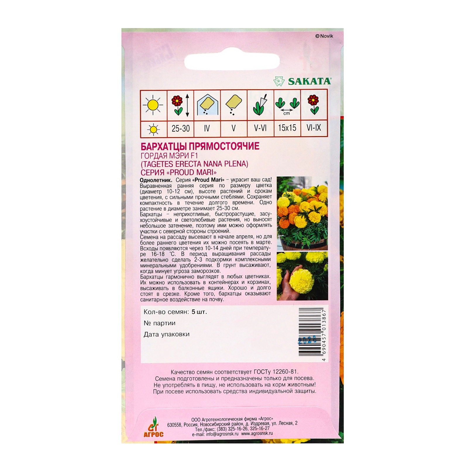 Семена Бархатцы "Гордая Мэри", F1, 5 шт., Sakata, "Агрос", Агросс, Россия