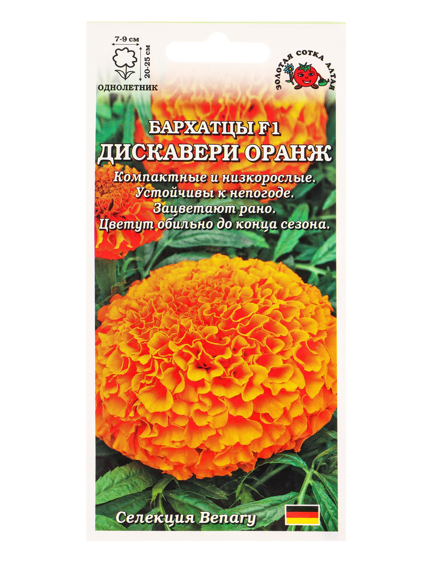 Семена Бархатцы Дискавери оранж F1 /Сотка/ 5шт/ прям. 25см, d-9см/*1500, Золотая Сотка Алтая, Россия