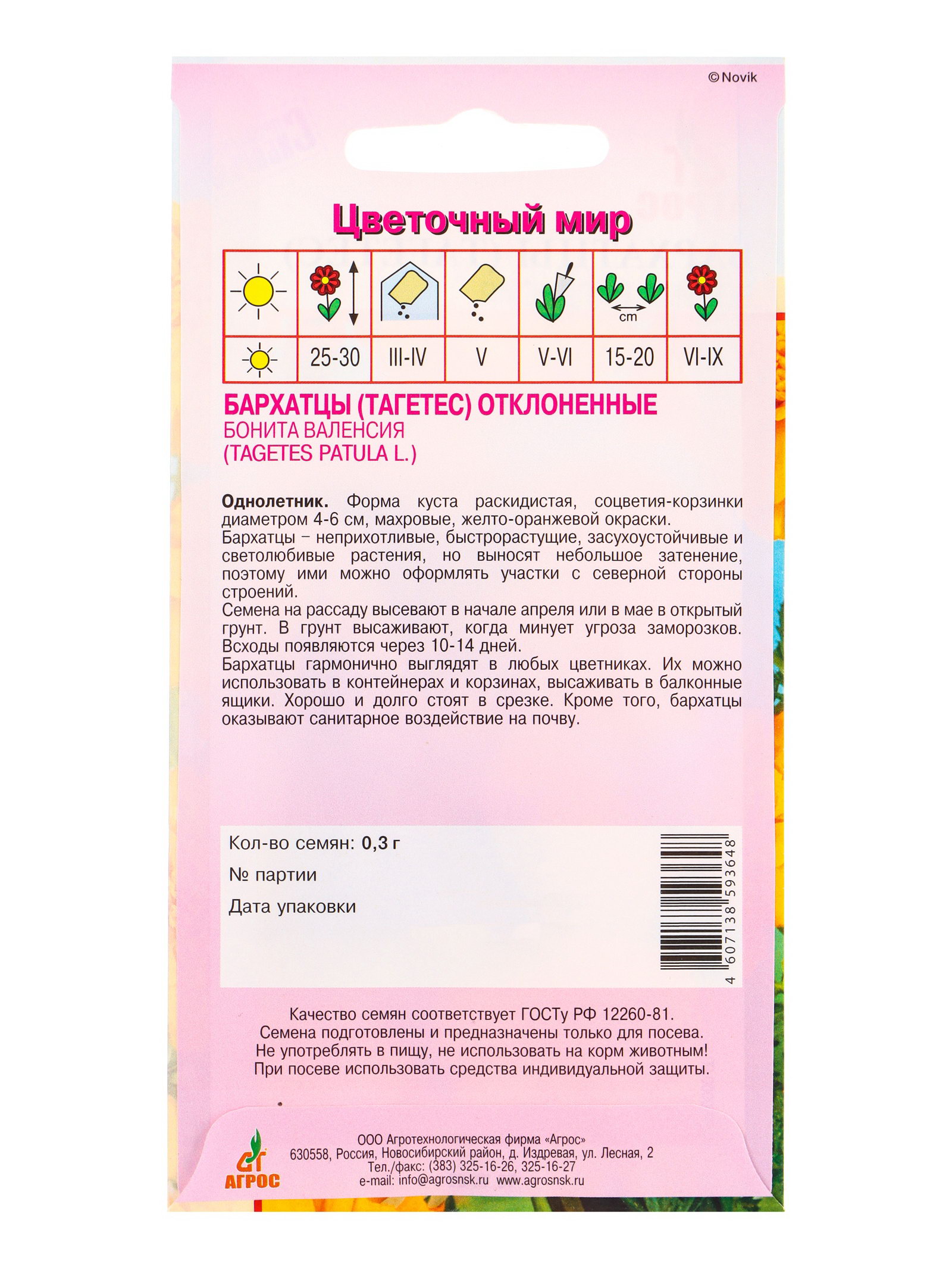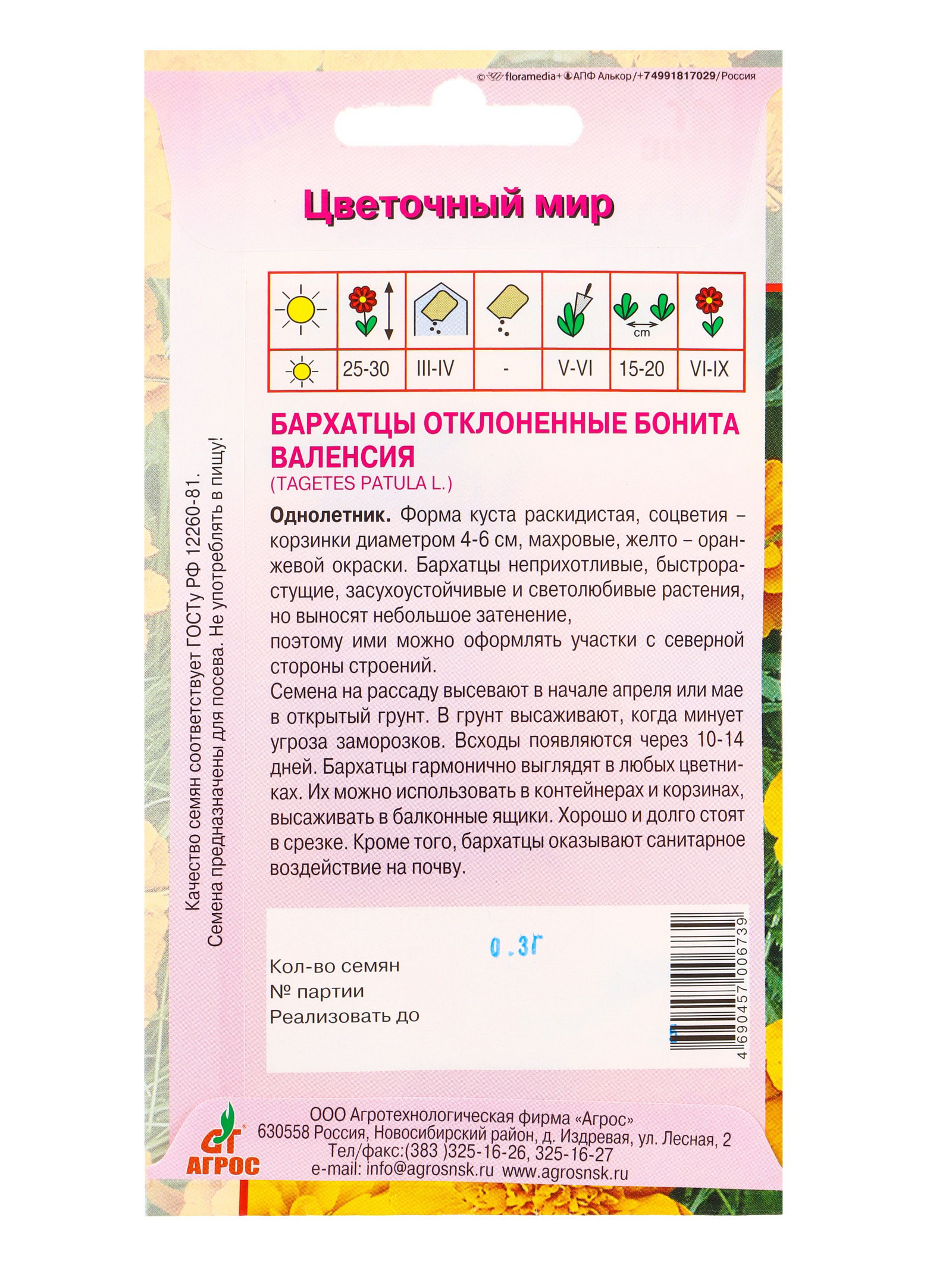 Семена Бархатцы Бонита Валенсия 0.3 г, Агросс, Россия