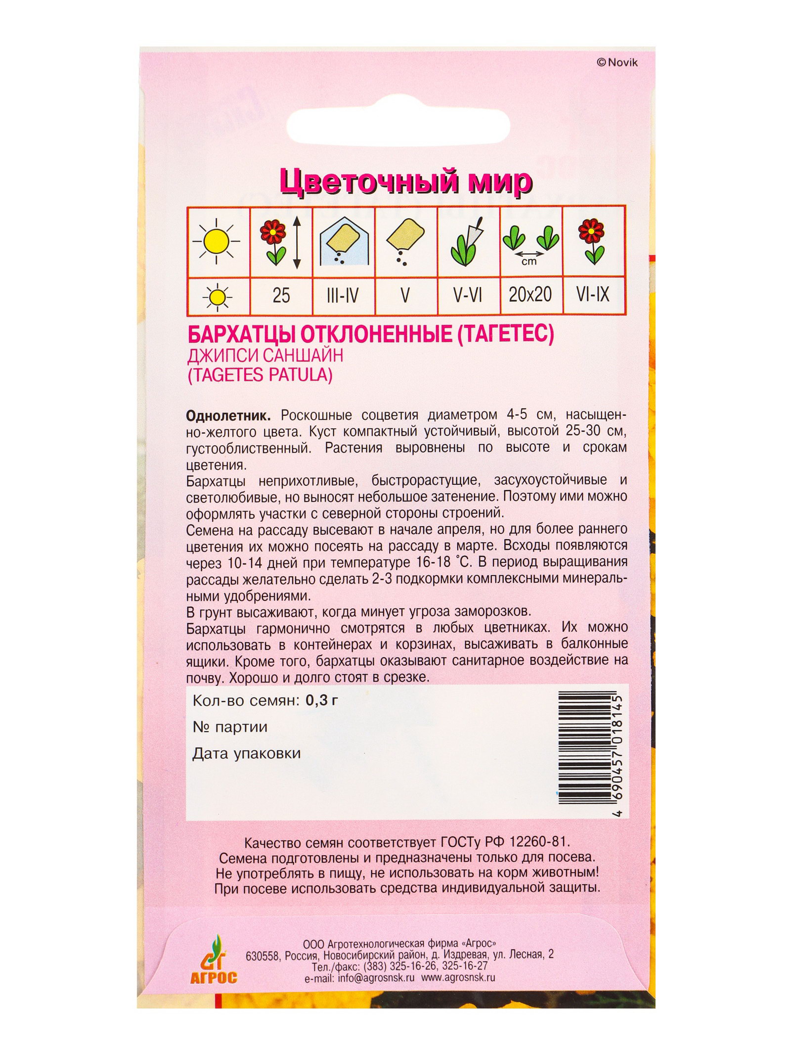 Семена Бархатцы Джипси Саншайн 0.3 г, Агросс, Россия