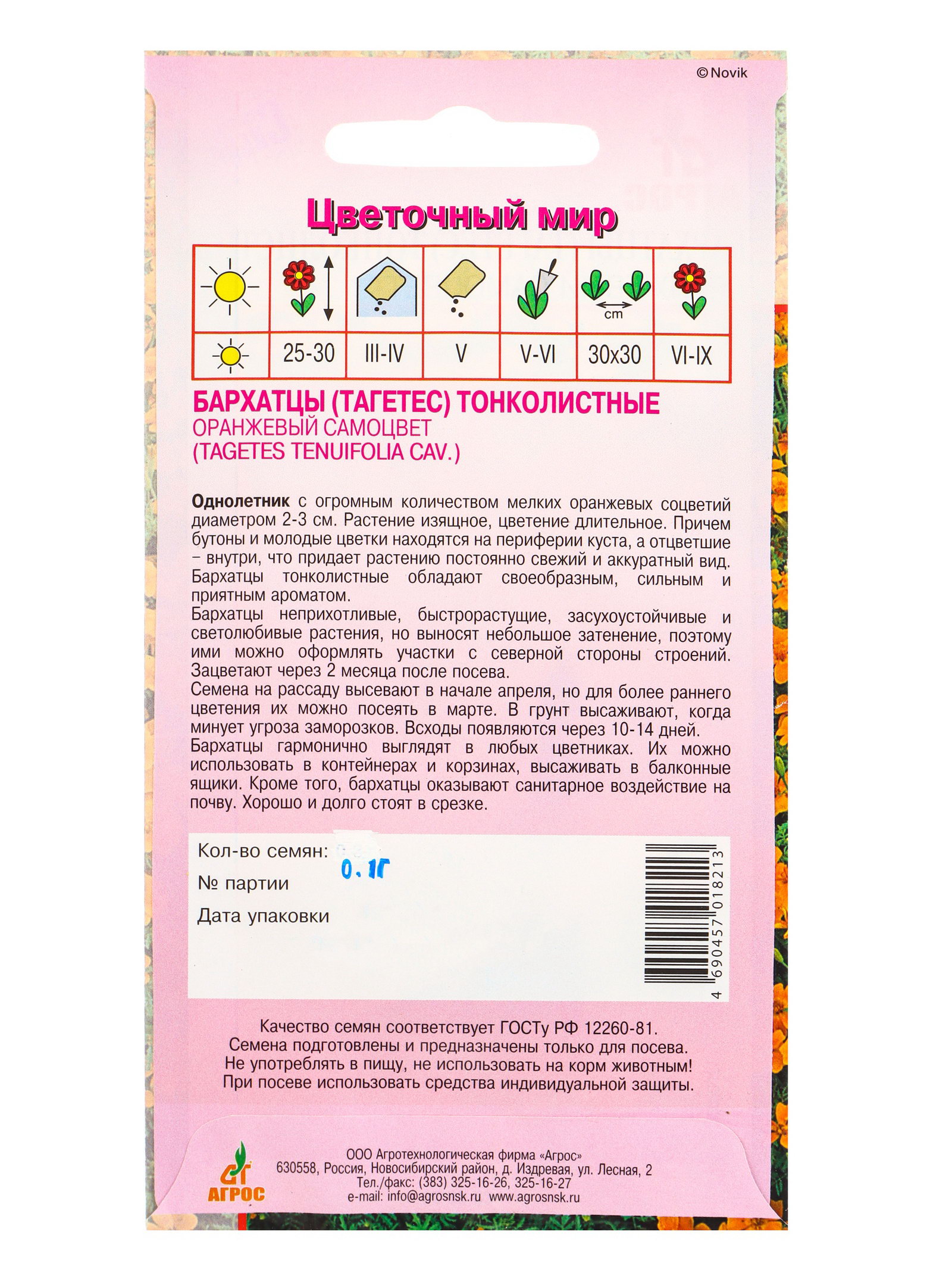 Семена Бархатцы Оранжевый самоцвет тонколистный 0.1 г, Агросс, Россия