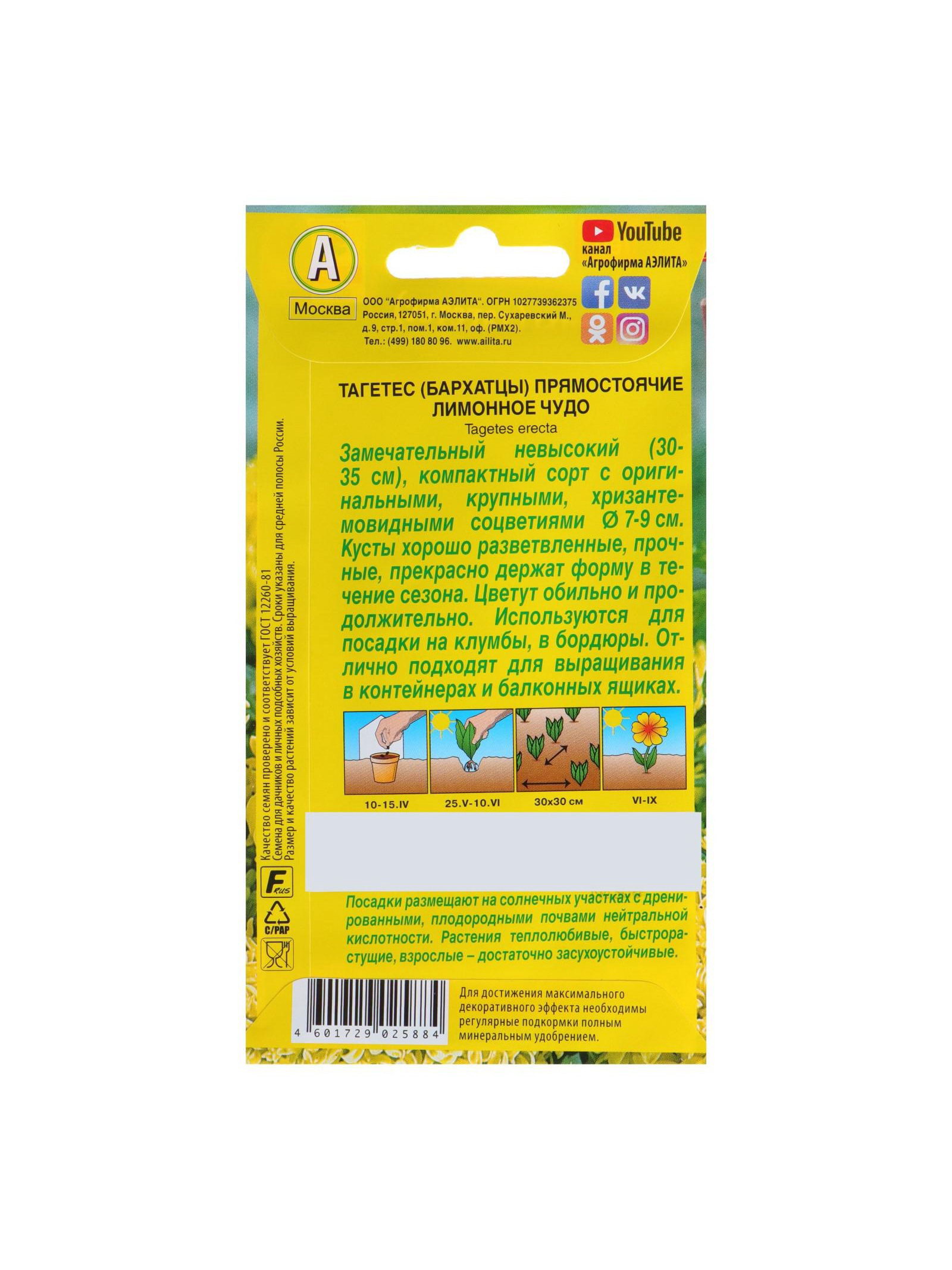Набор семян Бархатцы "Лимонное чудо" прямостоячие, О, 5 шт., 9x17x1 см., Мой выбор, Россия