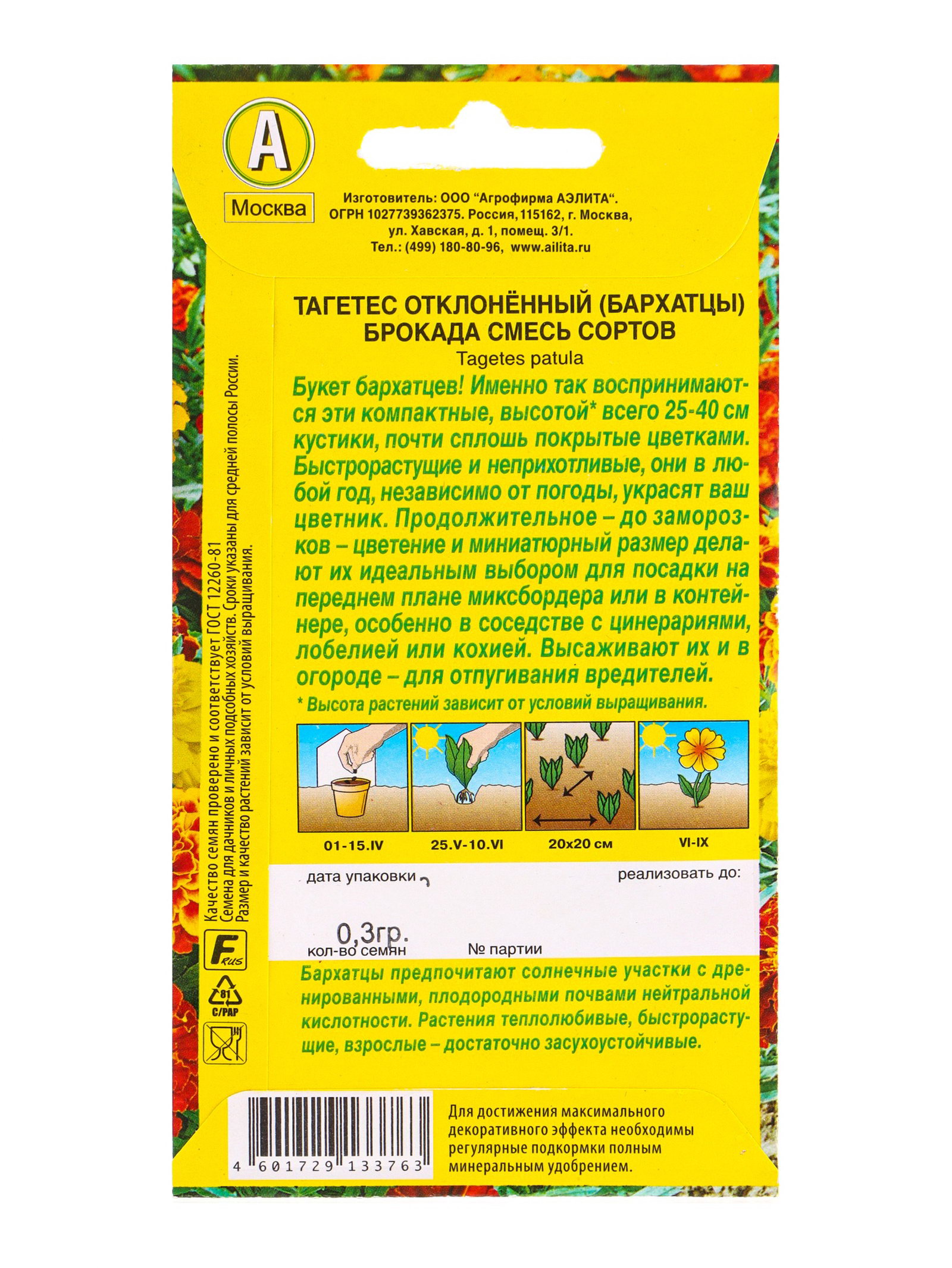 Семена цветов Бархатцы Брокада отклоненные, смесь сортов, Ц/П,0.3 г, Агрофирма АЭЛИТА, Нидерланды