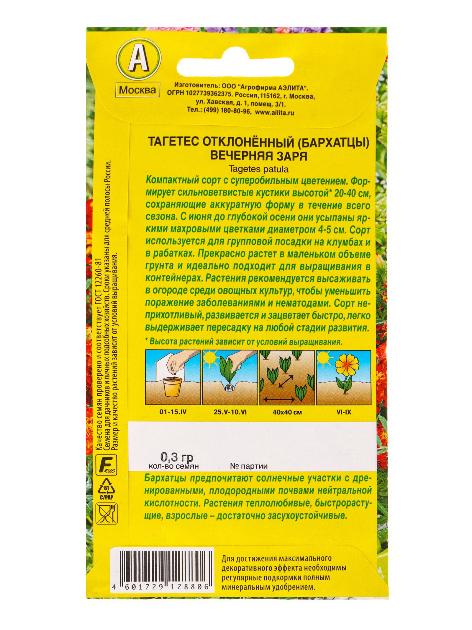 Семена цветов Бархатцы Вечерняя заря отклоненные, Ц/П,0.3 г, Агрофирма АЭЛИТА, Нидерланды