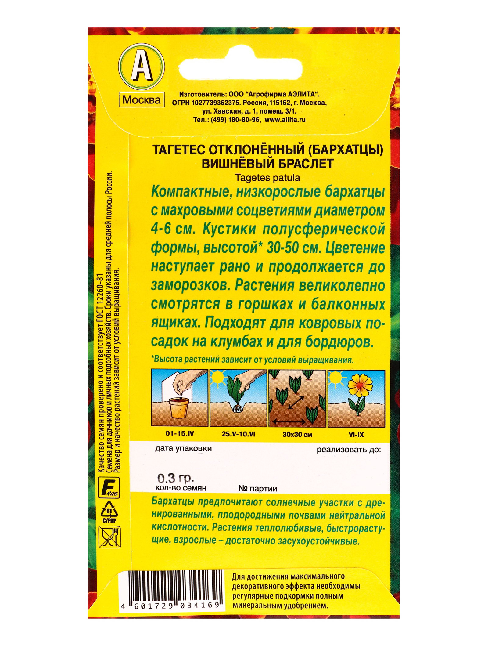 Семена цветов Бархатцы Вишневый браслет, Ц/П,0.3 г, Агрофирма АЭЛИТА, Германия