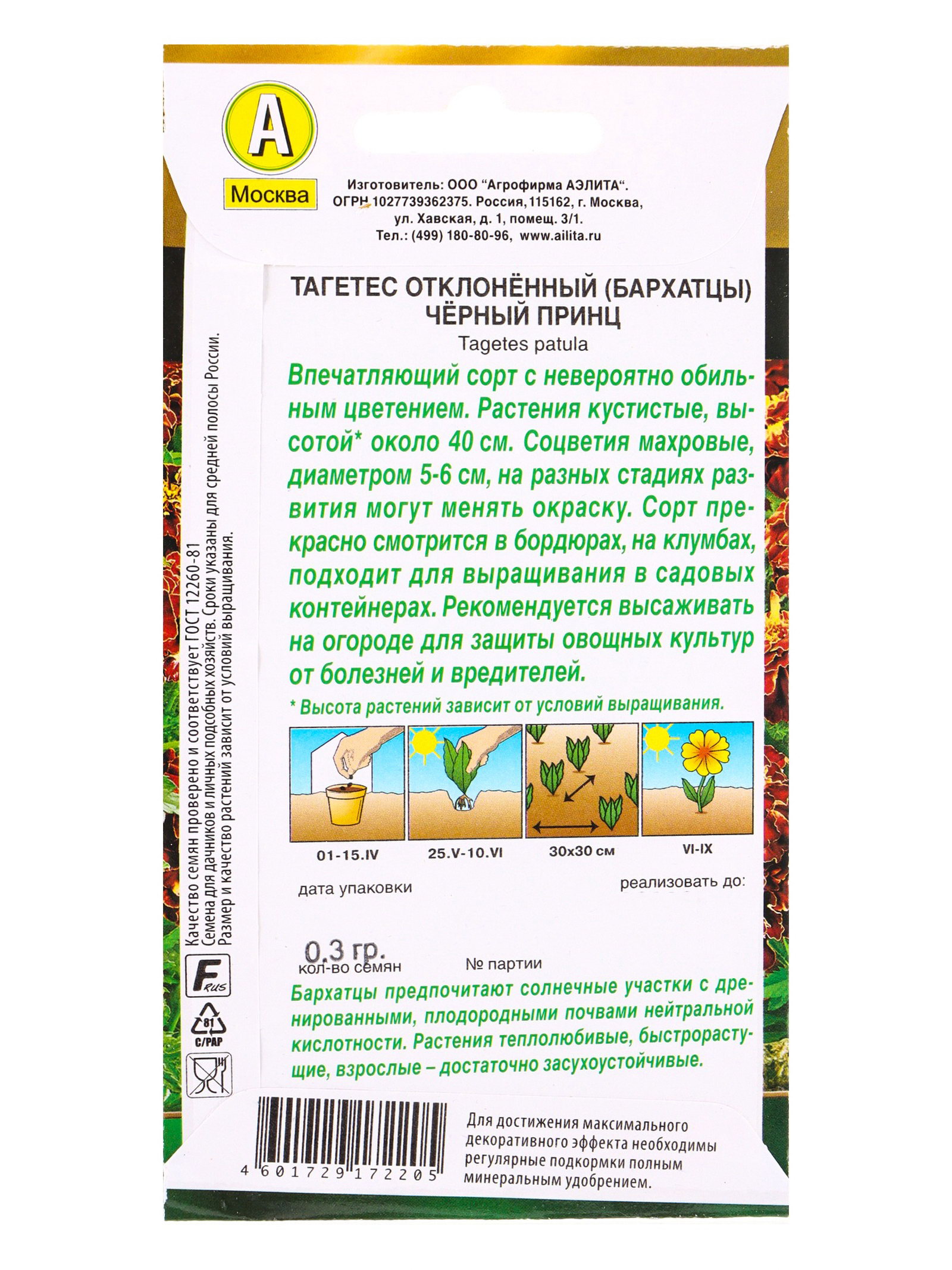 Семена цветов Бархатцы Черный принц отклоненные Золотая серия, Ц/П,0.3 г, Агрофирма АЭЛИТА, Нидерланды