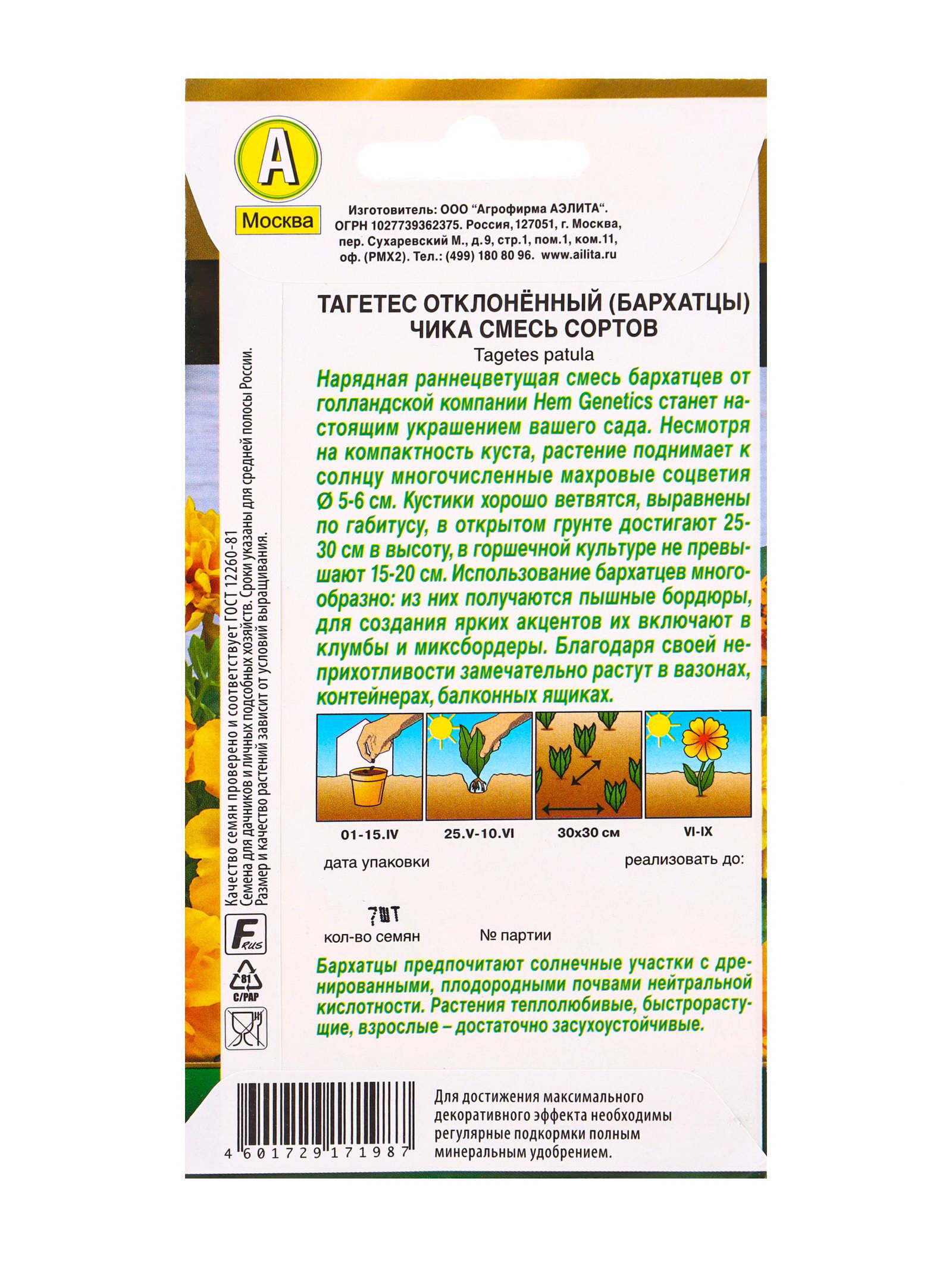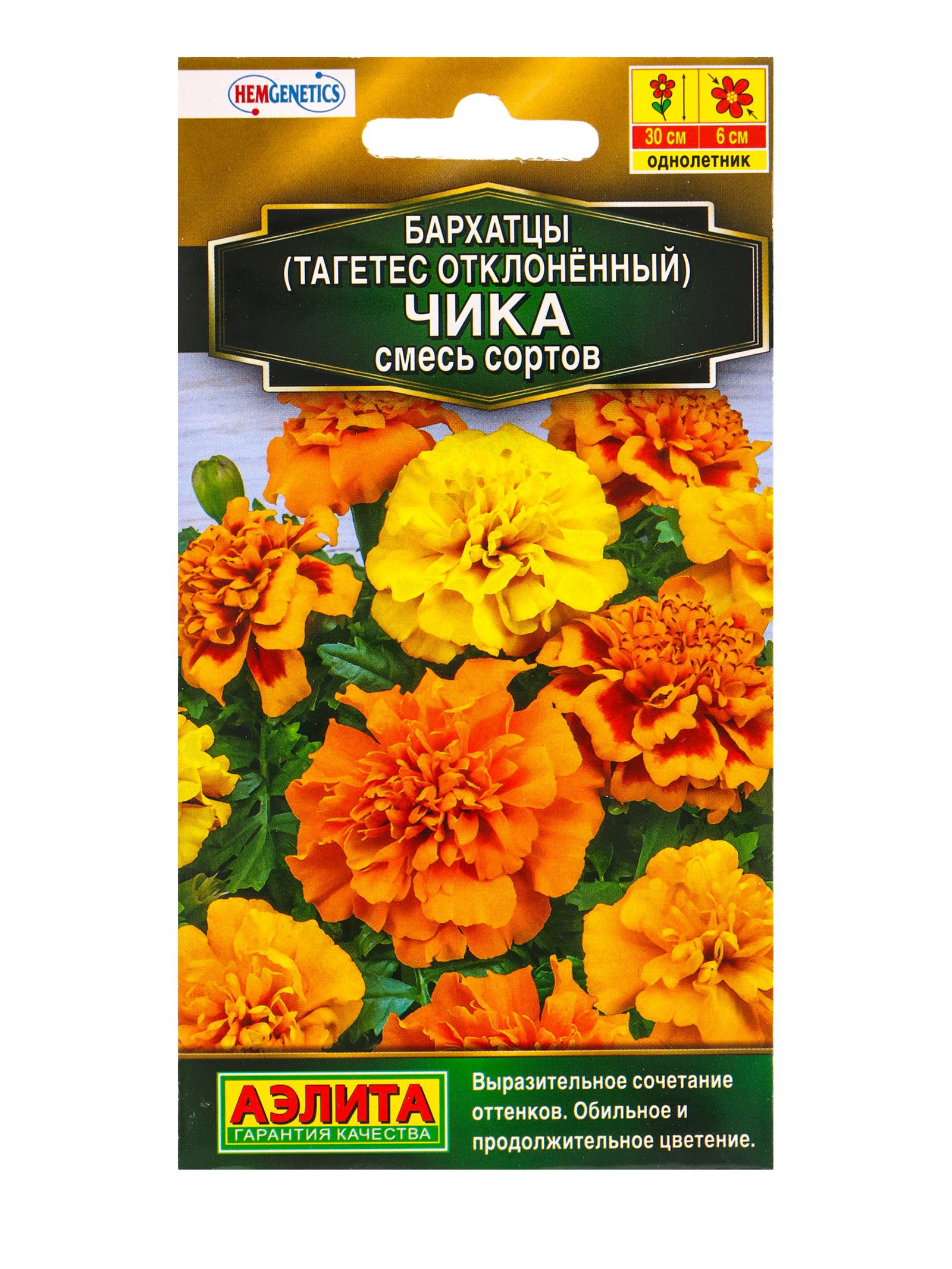 Семена цветов Бархатцы Чика отклоненные, смесь сортов С. Hem Genetics Золотая серия, Ц/П,7 шт. 1094, Агрофирма АЭЛИТА, Чили