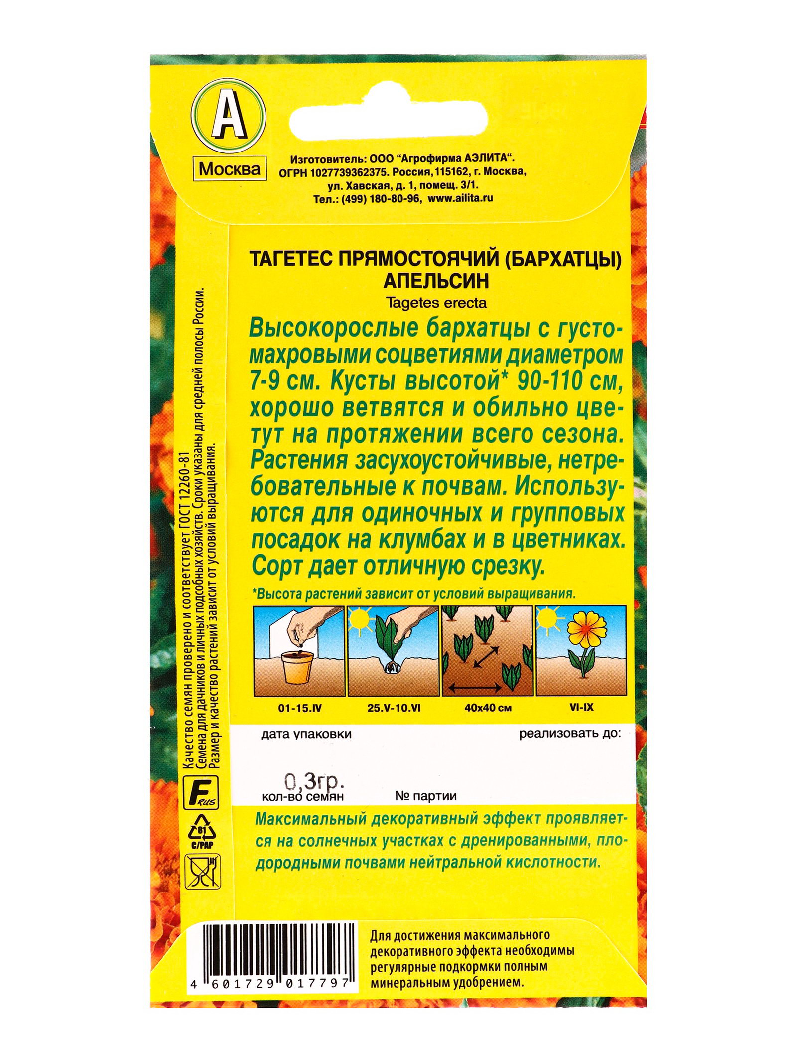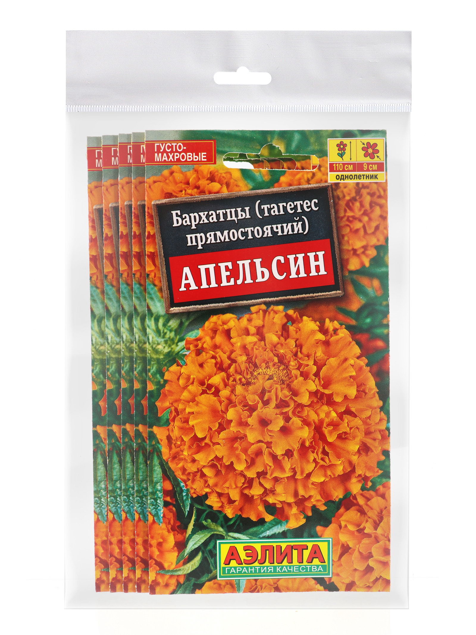 Набор семян Бархатцы "Апельсин" прямостоячие, О, 5 шт., 9x17x1 см., Мой выбор, Россия