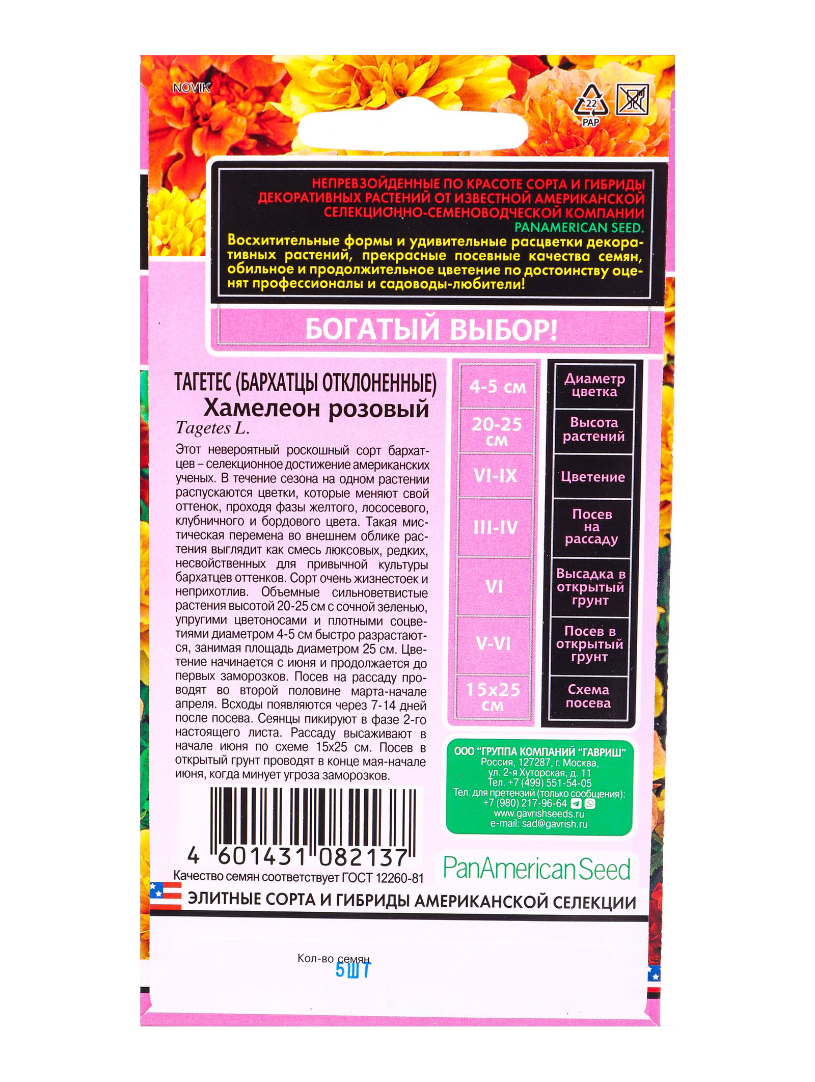 Семена цветов Бархатцы откл. Хамелеон розовый, Гавриш, Россия
