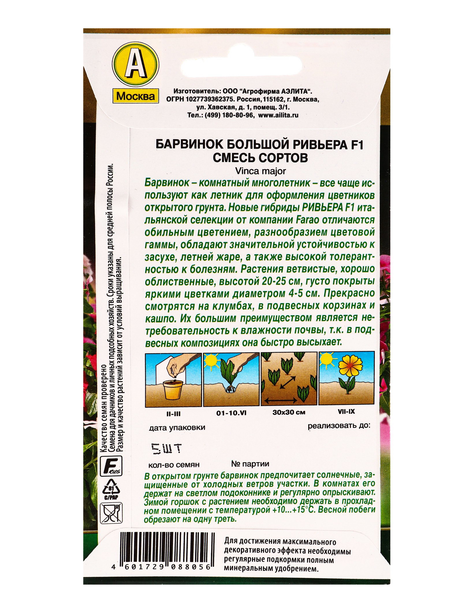 Семена цветов Барвинок Ривьера F1, смесь сортов С. Farao Золотая серия, Ц/П,5 шт., Агрофирма АЭЛИТА, Италия