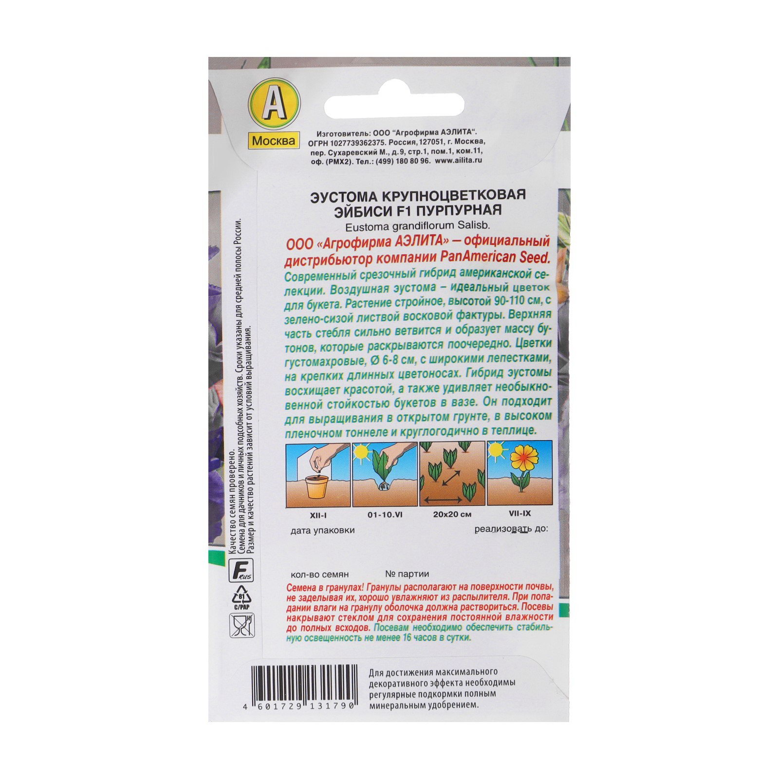 Семена Эустома "Эйбиси" F1 пурпурная крупноцветковая махровая, 5шт, Агрофирма АЭЛИТА, Коста-Рика