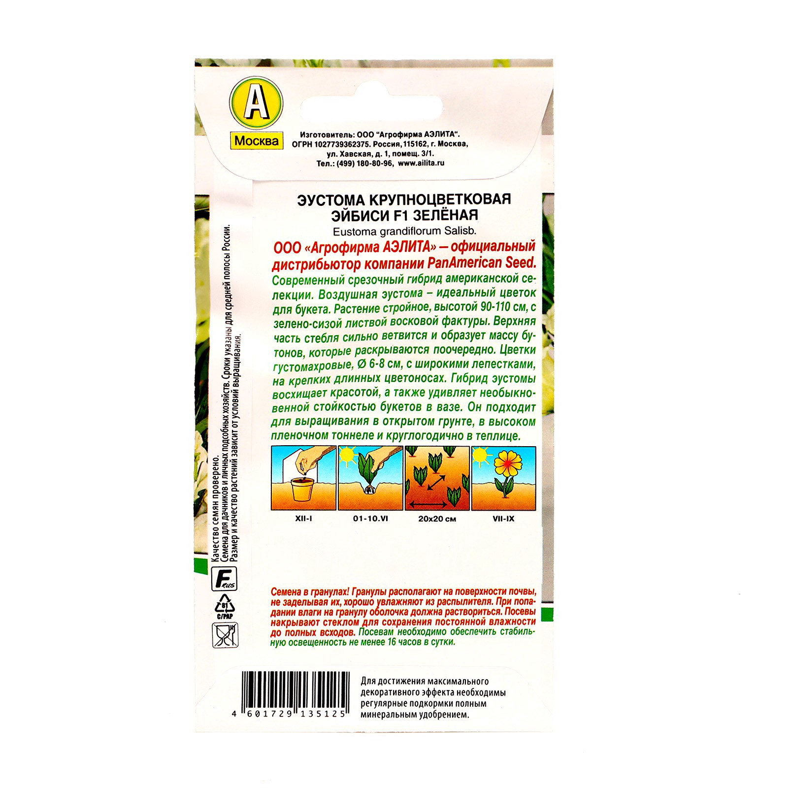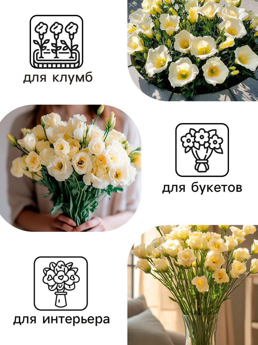 Назначение: Для создания букетов, Для создания цветников, клумбы Вид: Семечки, Эустома (Лизиантус) Цветение период: Август, Июль, Июнь, Сентябрь Посев на рассаду: Декабрь, Февраль, Январь Размер упаковки: 8 x 0.1 x 13 см. Особенности выращивания: Открытый грунт Сухоцвет: Нет Махровые: Нет По форме куста: Кустовая Вегетация: Однолетники Разновидность: Цветущее Отношение к свету: Светолюбивые Нуждаются ли в стратификации: Нет Нуждаются ли в стратификации: Нет tnved: 1209999900 Посев (посадка) в грунт: Июнь Высота растений: 100-150 см Температурное ограничение: Нет Агрономический срок годности, лет: 3 Цвет: Белый Воздушная эустома – идеальный цветок для букета. Современный срезочный гибрид американской селекции компании PanAmerican Seed – растение стройное, высотой 90-110 см, с зелено-сизой листвой восковой фактуры. Верхняя часть стебля сильно ветвится и образует массу бутонов, которые раскрываются поочередно. Цветки густомахровые, 6-8 см, с широкими лепестками, на крепких, длинных цветоносах. Гибрид эустомы восхищает красивыми цветками, а также удивляет необыкновенной стойкостью букетов в вазе. Растение подходит для выращивания в открытом грунте, в высоком пленочном тоннеле и в теп лице (круглогодично). | ||