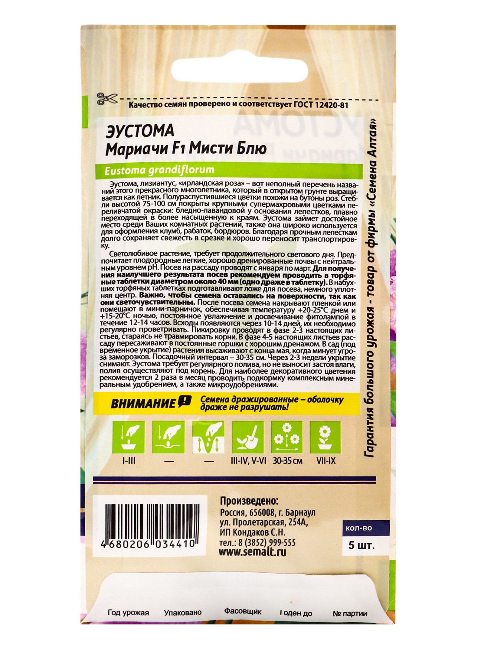 Семена цветов Эустома "Мариачи Мисти", ц/п, Блю/Сем Алт/ц/п, 5 шт, Семена Алтая, Россия
