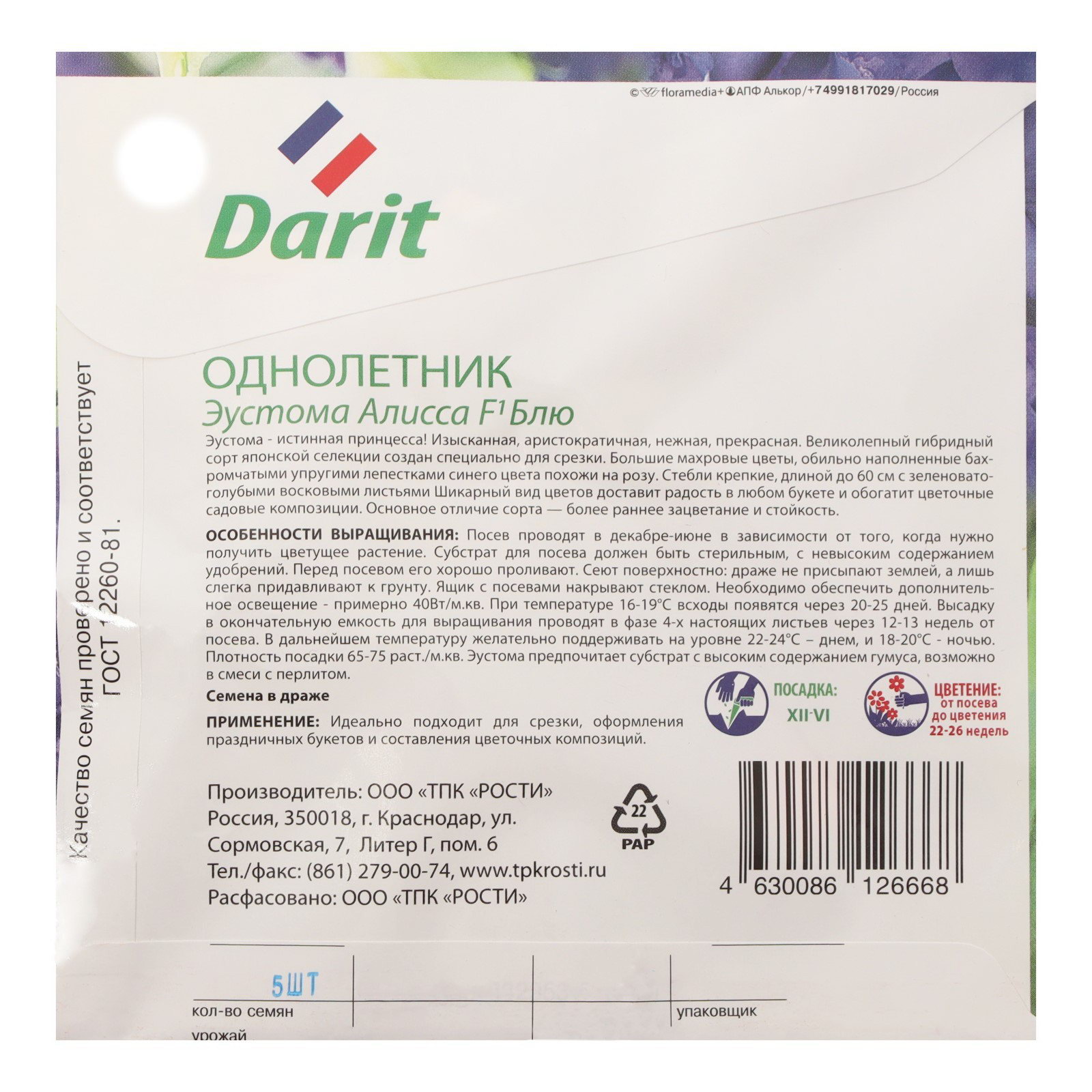 Назначение: Для балкона, веранды, Для комнатного выращивания, Для создания букетов Посев на рассаду: Март, Февраль Цветение период: Июль, Июнь Посев (посадка) в грунт: Июнь, Май Размер упаковки: 11 x 0.5 x 11 см. tnved: 1209913000 Вегетация: Однолетники Сухоцвет: Нет Место выращивания: Открытый грунт Нуждаются ли в стратификации: Да Махровые: Да По форме куста: Кустовая Высота растений: 60-100 см Отношение к свету: Светолюбивые Разновидность: Цветущее Температурное ограничение: Нет Цвет: Сиреневый Вид: Эустома (Лизиантус) Семена эустомы "Алисса F1 Йеллоу" это гибрид знаменитого "ирландской розы" с крупными махровыми цветками нежного жёлтого оттенка. Растение формирует стройный куст, усыпанный бутонами, похожими на полураспустившиеся розы.