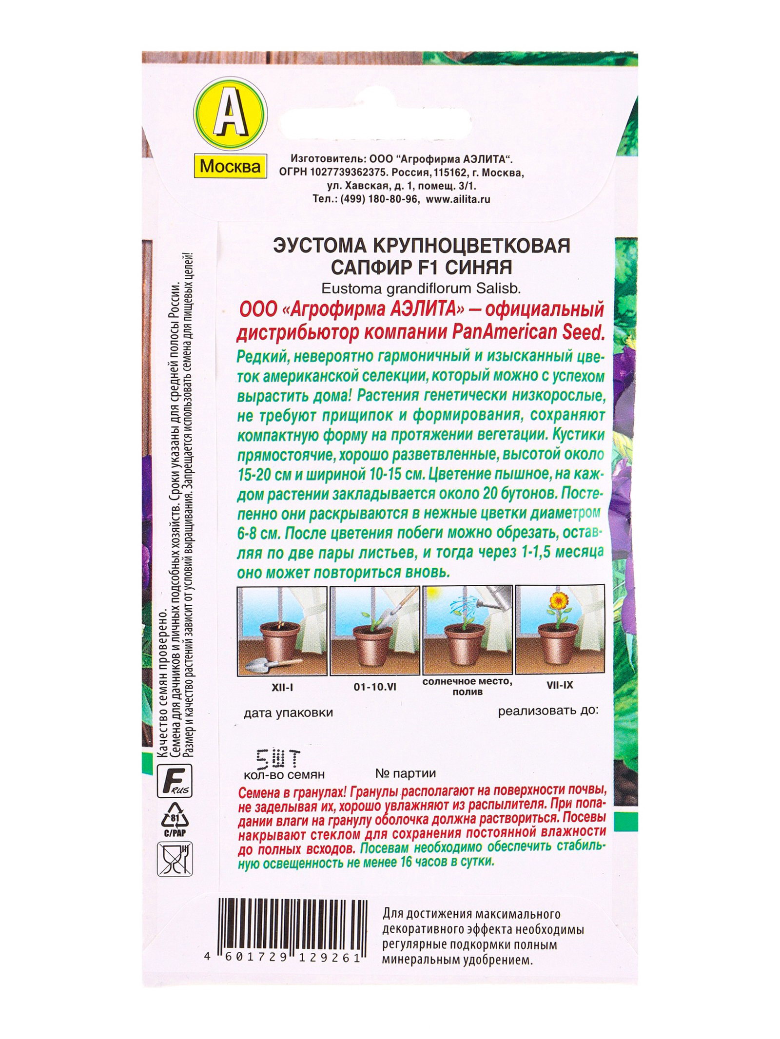 Семена цветов Эустома Сапфир F1 синяя крупноцветковая, Агрофирма АЭЛИТА, Гватемала