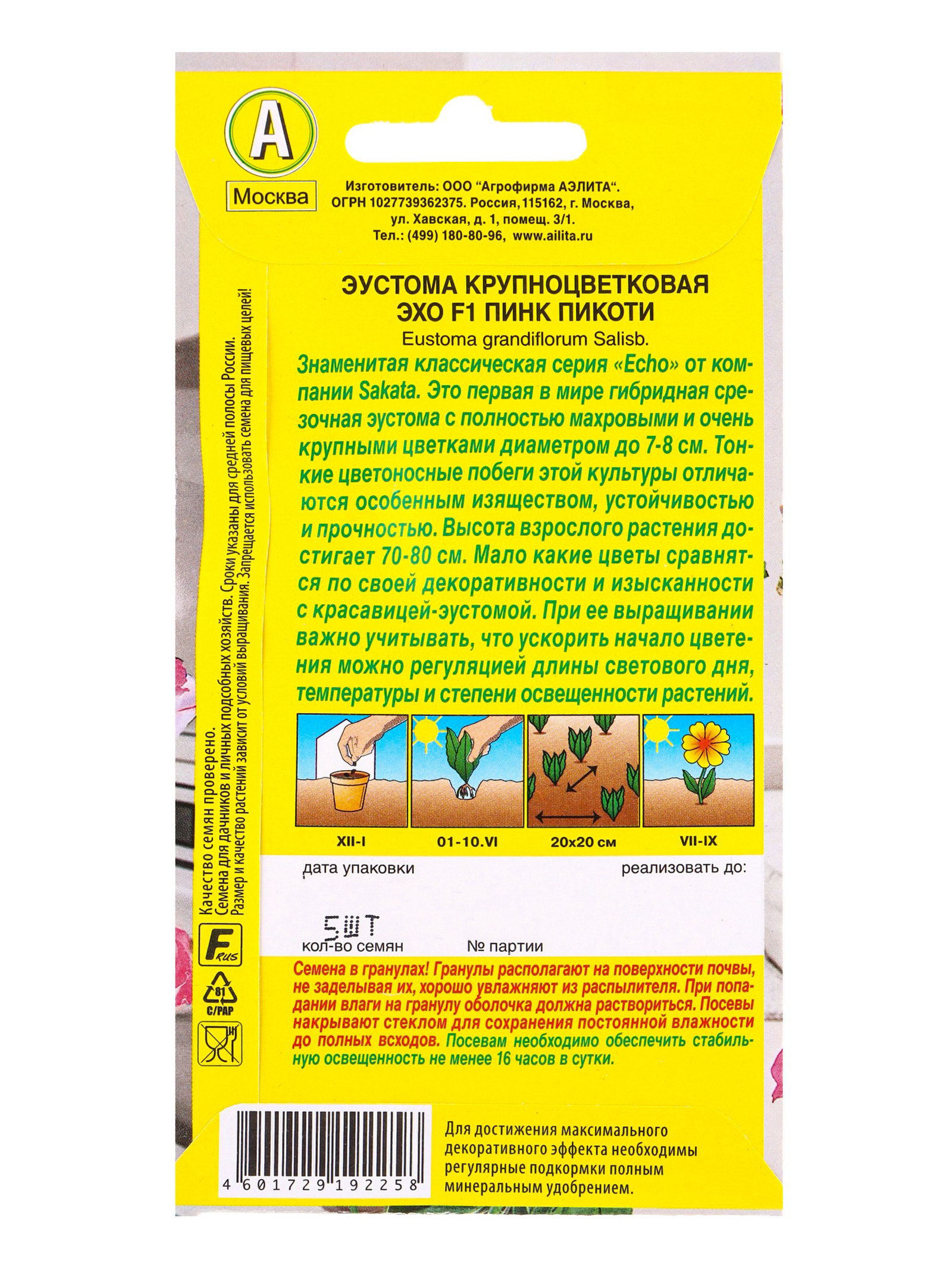 Семена цветов Эустома Эхо F1 пинк пикоти крупноцветковая, Агрофирма АЭЛИТА, Япония