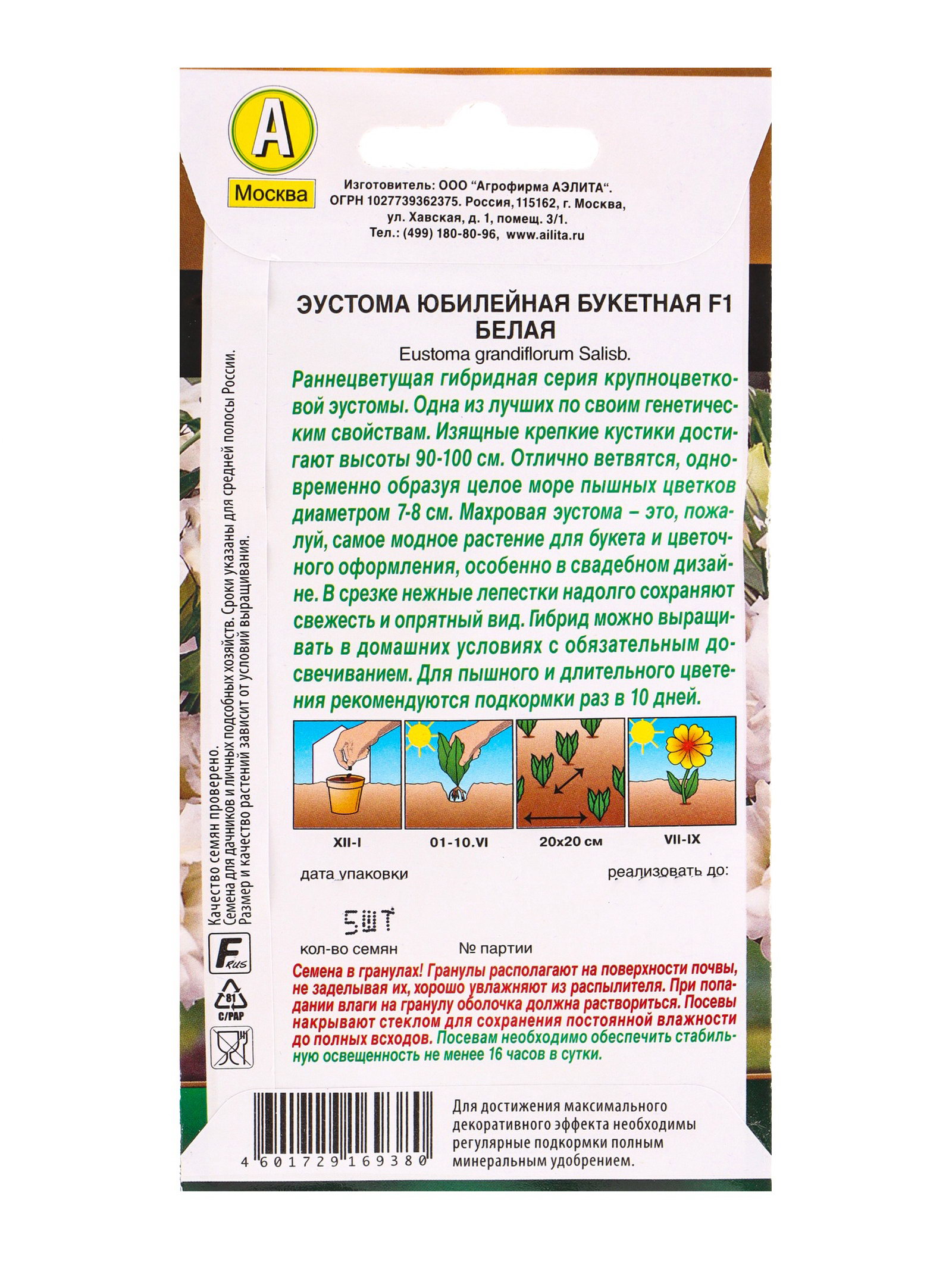 Семена цветов Эустома Юбилейная букетная F1 махровая белая, Агрофирма АЭЛИТА, Коста-Рика