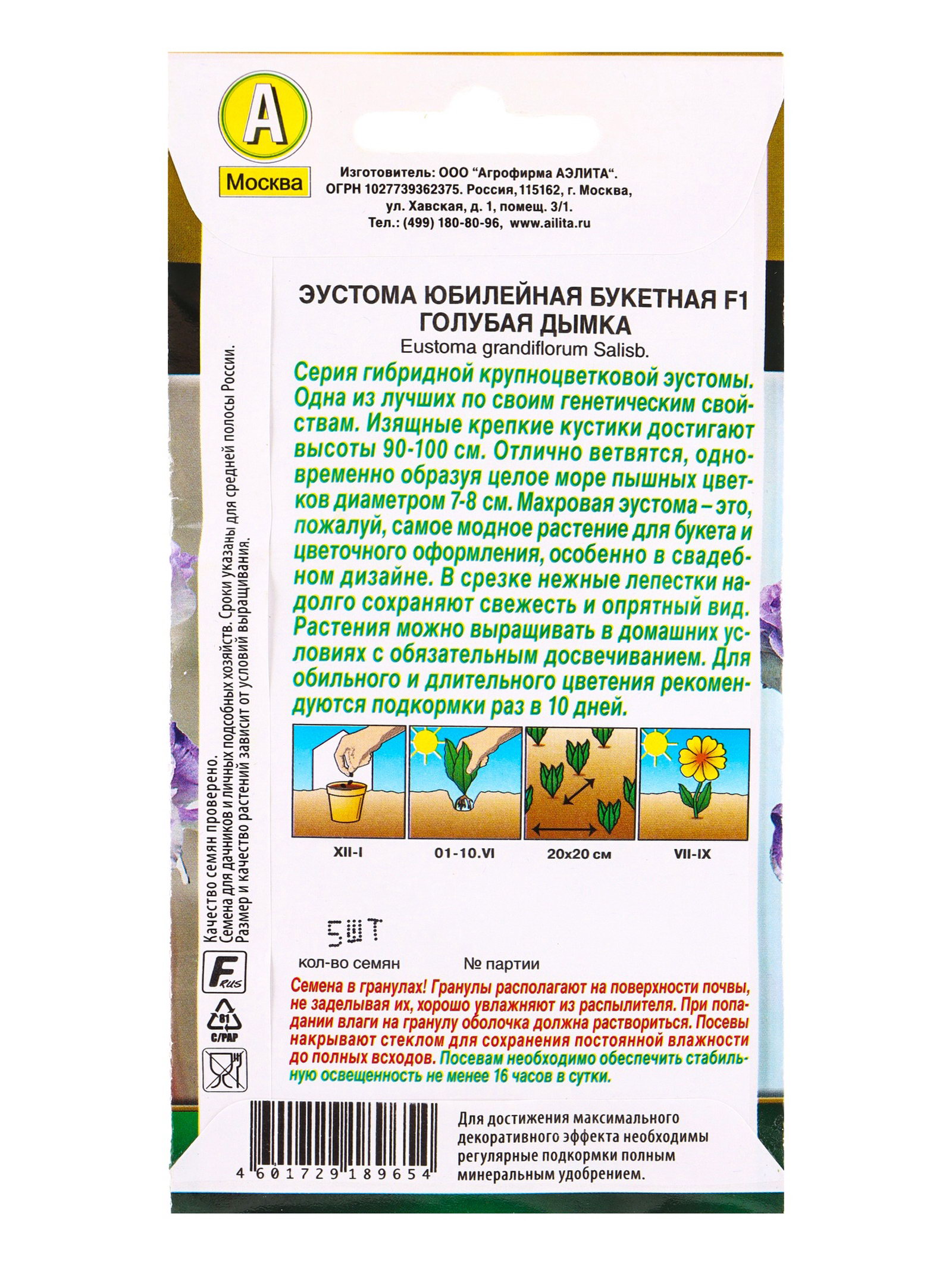 Семена цветов Эустома Юбилейная букетная F1 махровая голубая дымка, Агрофирма АЭЛИТА, Коста-Рика
