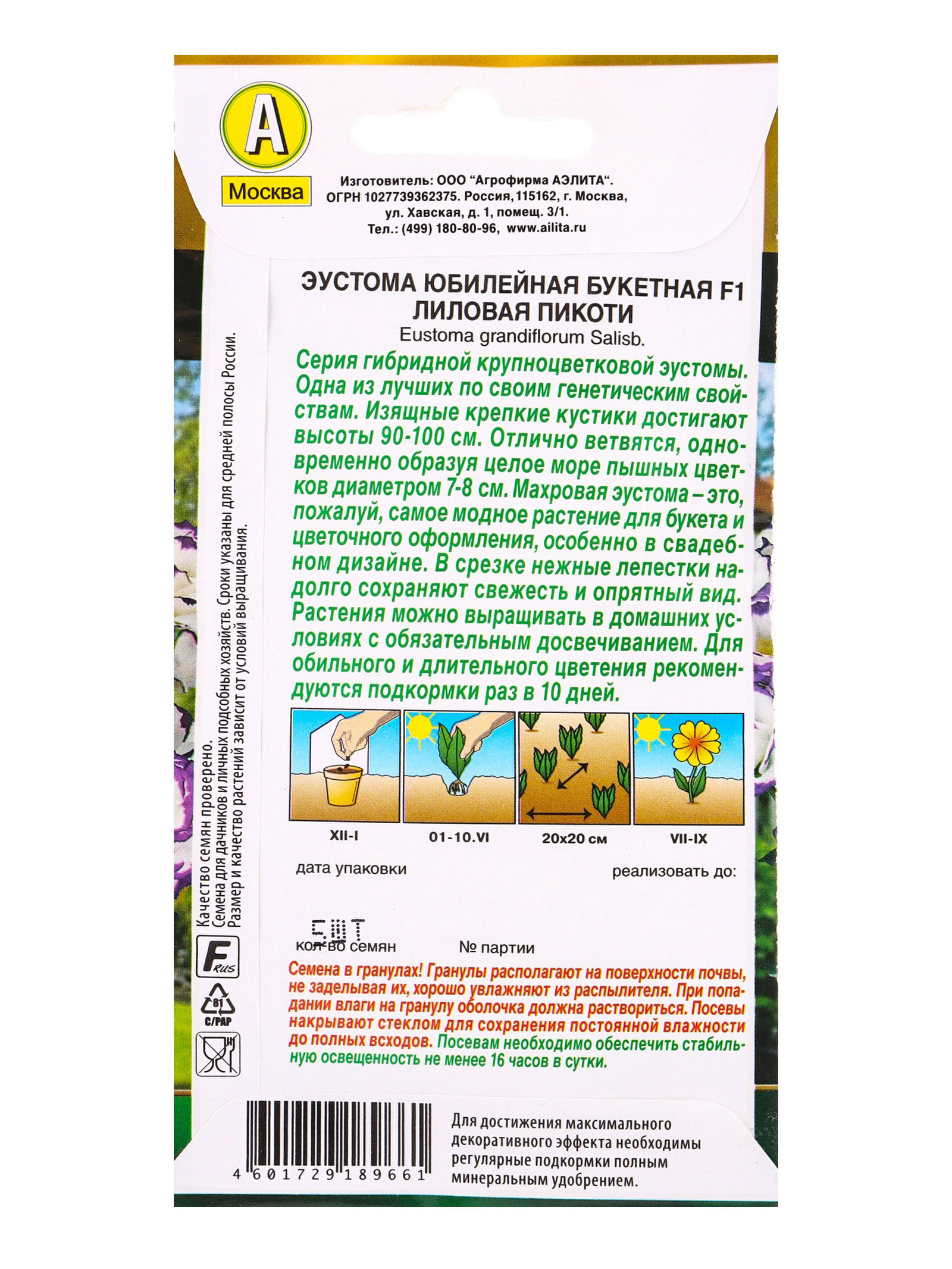 Семена цветов Эустома Юбилейная букетная F1 махровая лиловая пикоти, Агрофирма АЭЛИТА, Коста-Рика