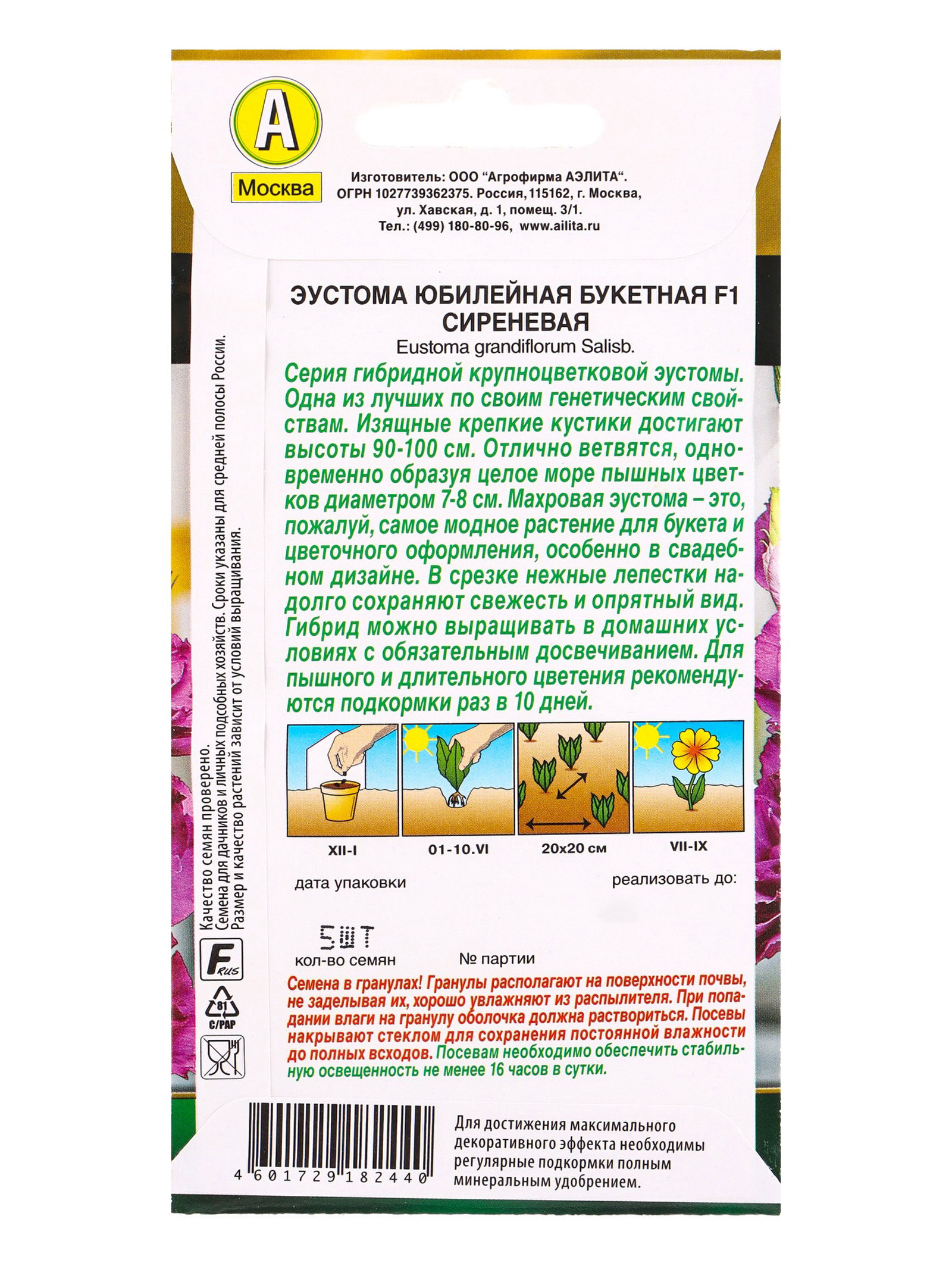 Семена цветов Эустома Юбилейная букетная F1 махровая сиреневая, Агрофирма АЭЛИТА, Коста-Рика