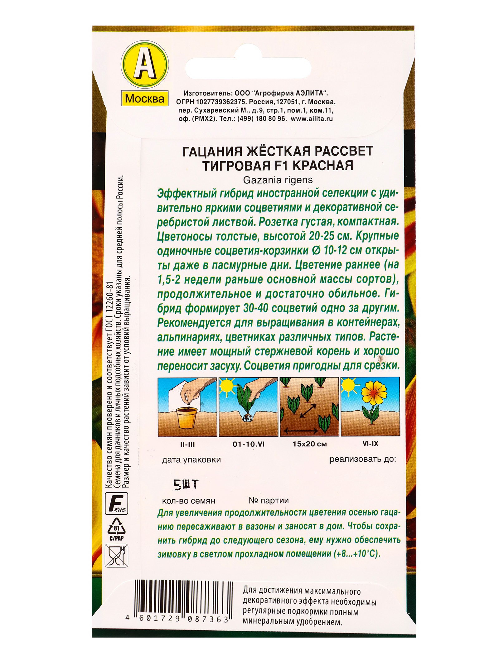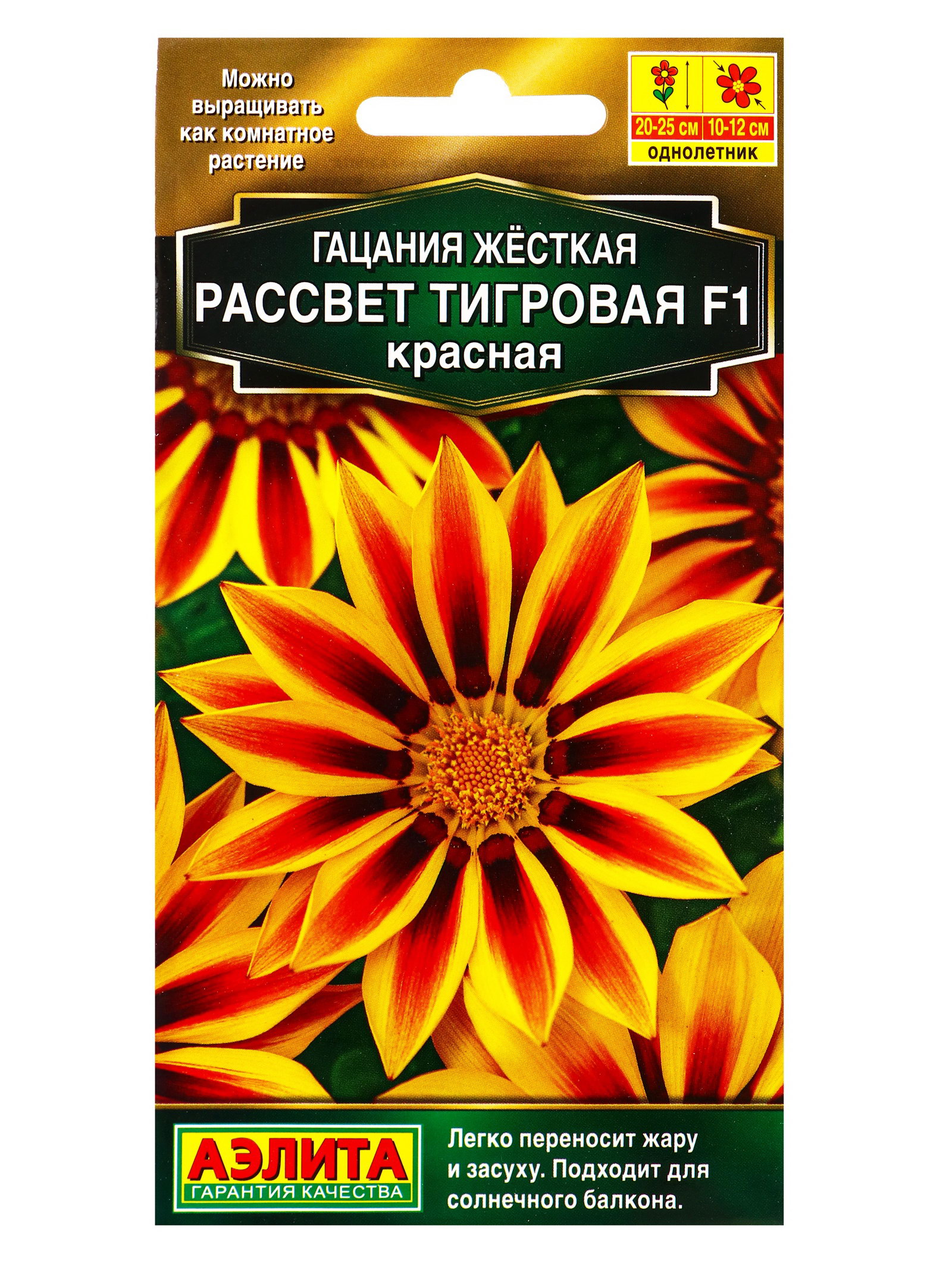 Семена цветов Гацания "Рассвет" F1 тигровая красная, для балкона, веранды, цветника, однолетник, низкорослая, 5 шт., Агрофирма АЭЛИТА, США