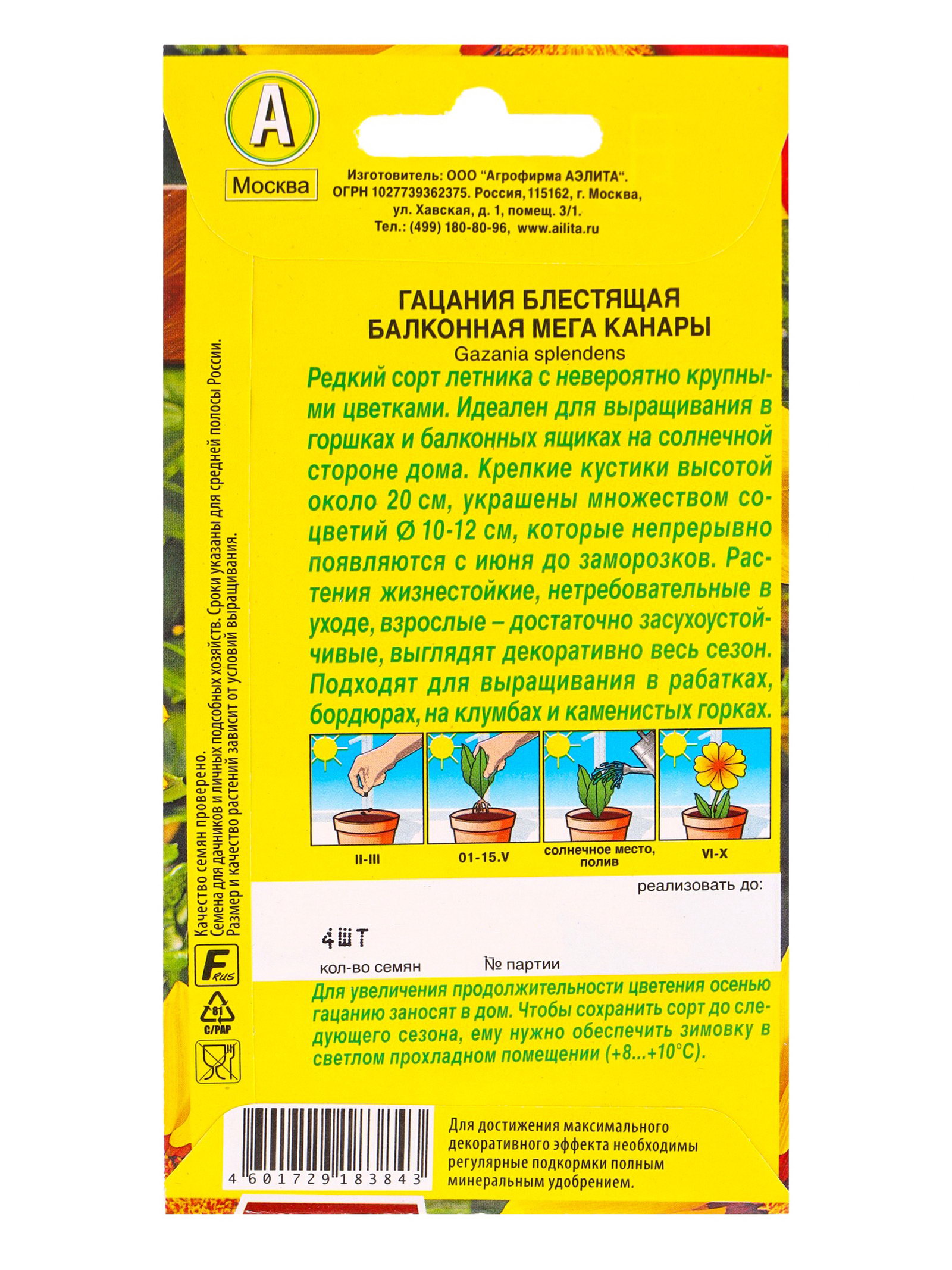 Семена цветов Гацания Балконная мега канары Цветущий балкон, Ц/П,4 шт., Агрофирма АЭЛИТА, Нидерланды