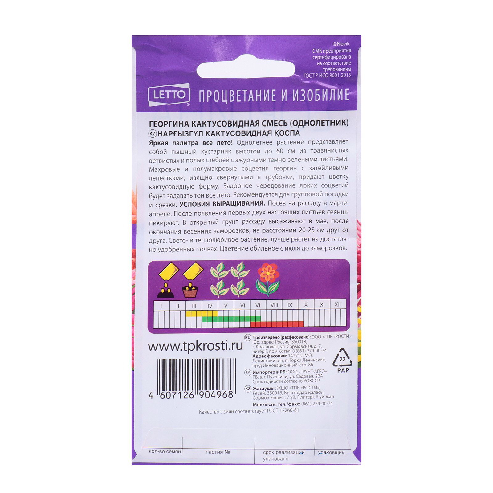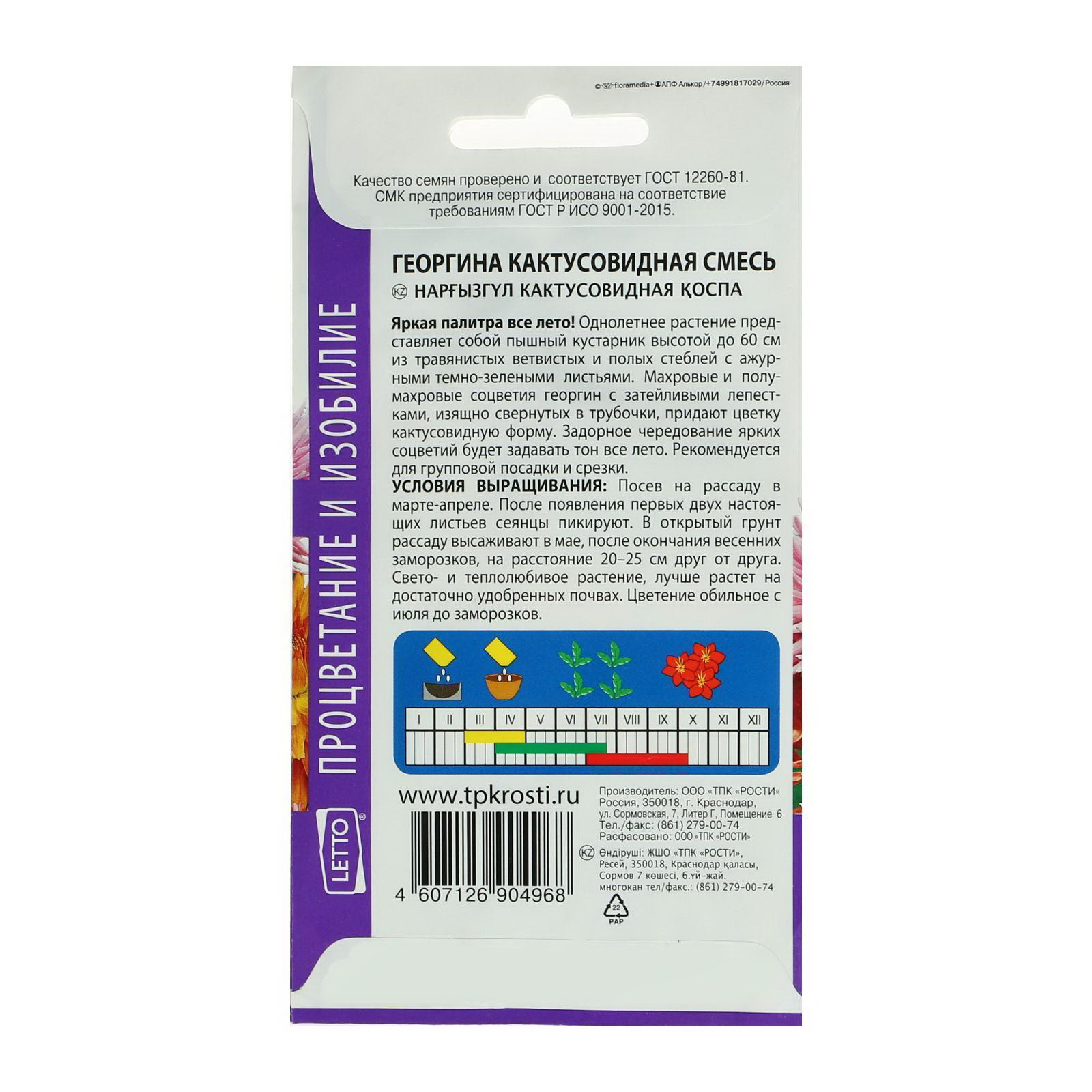 Семена цветов Георгина Кактусовидная смесь, О, 0.2 г, Агроуспех, Россия