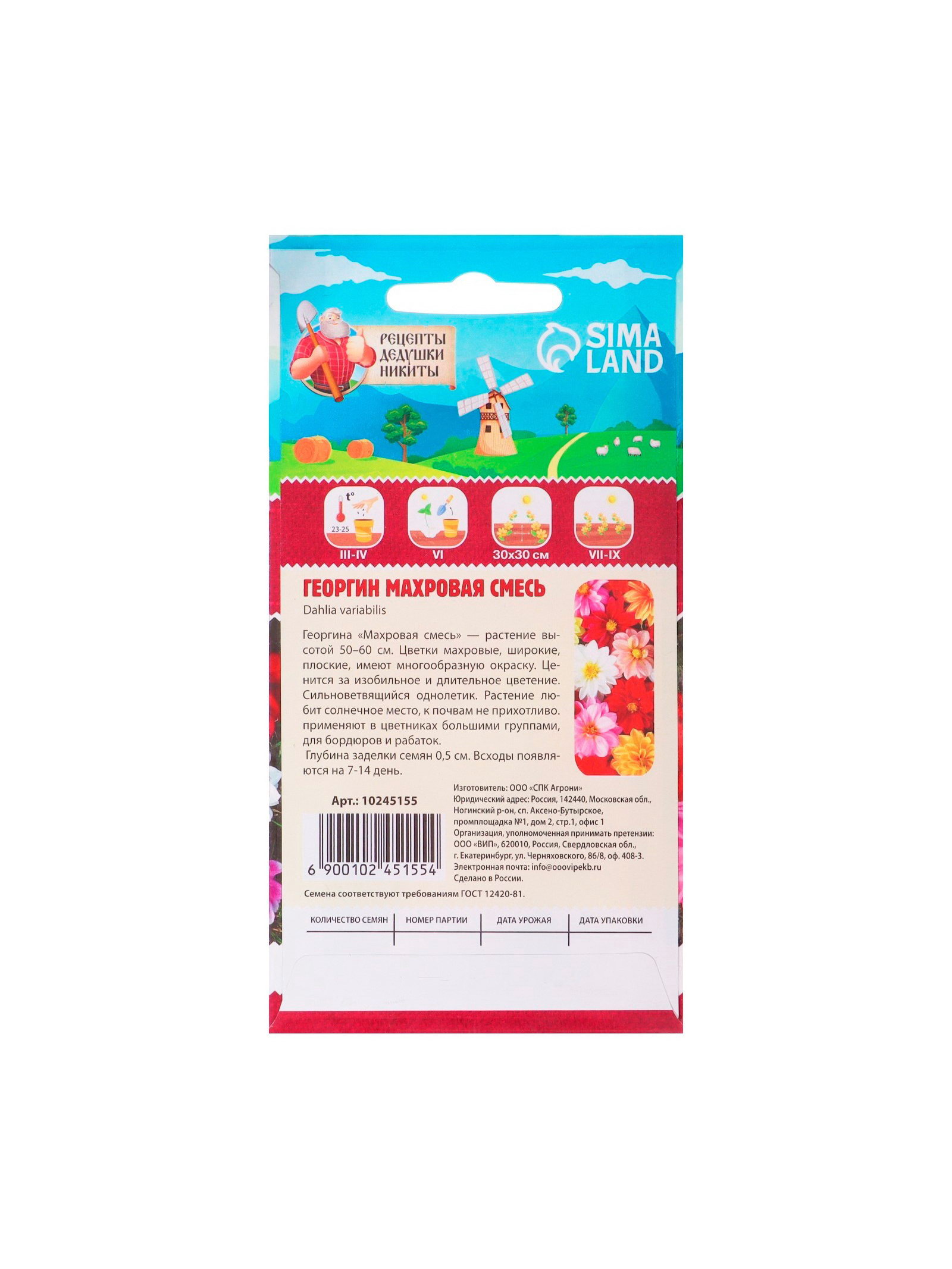 Семена цветов Георгин "Махровая смесь", 0.3 г, Рецепты дедушки Никиты, Россия