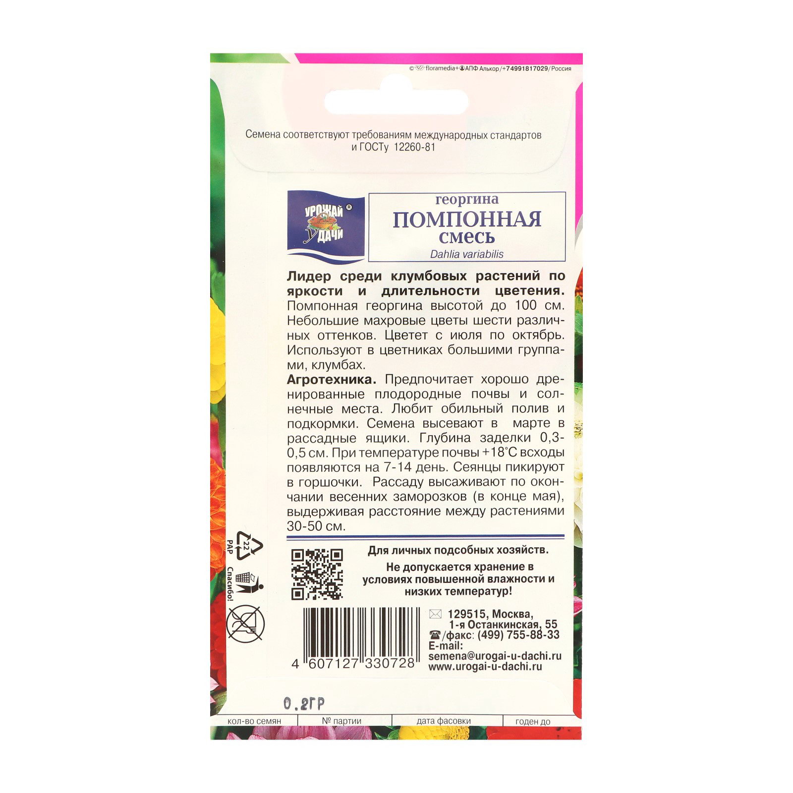 Семена цветов Цв Георгина Смесь "Помпонная",набор 5 шт, Мой выбор, Россия