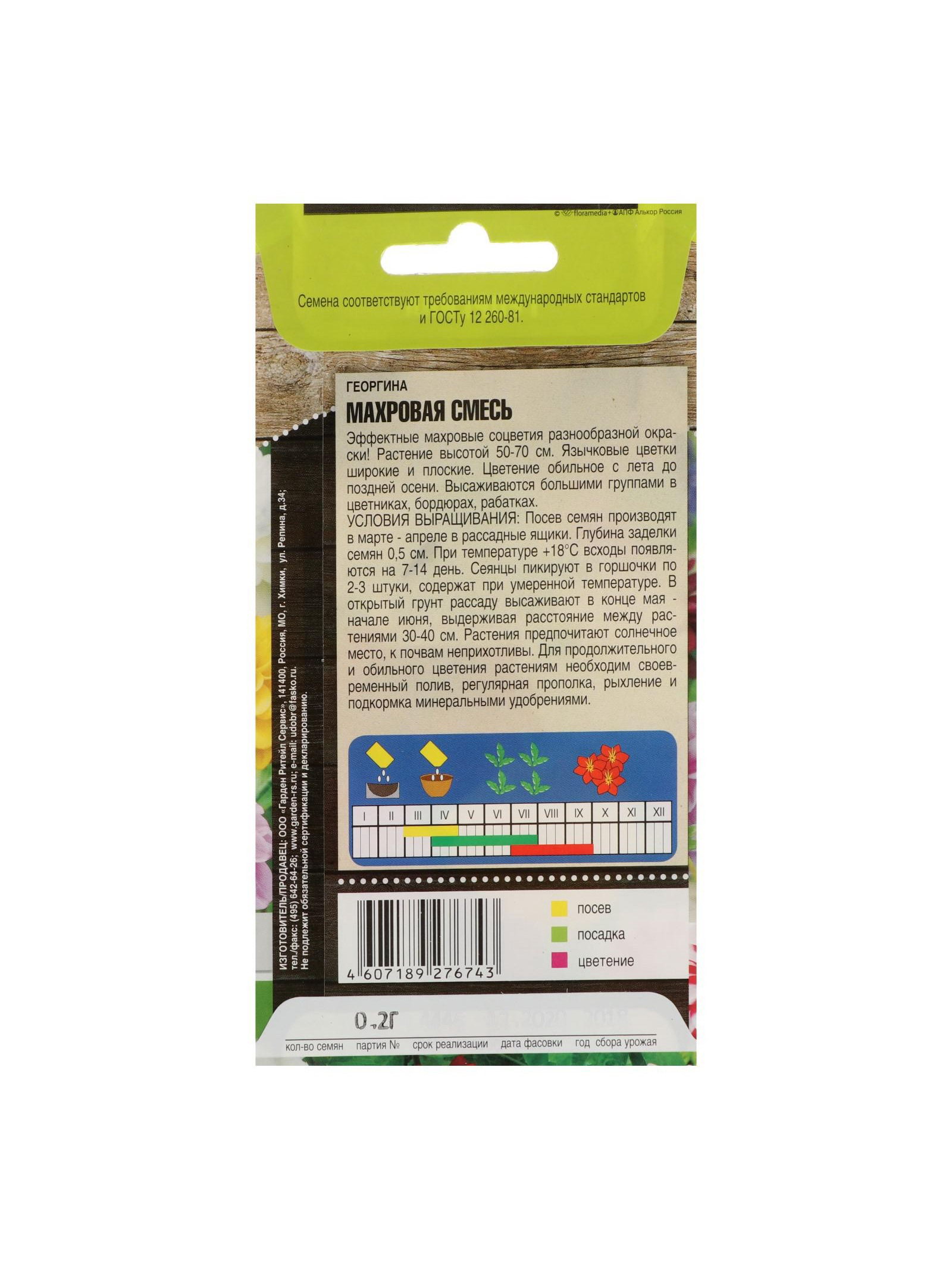 Набор семян Георгина "Махровая" смесь, О, 5 шт., 9x17x1 см., Мой выбор, Россия