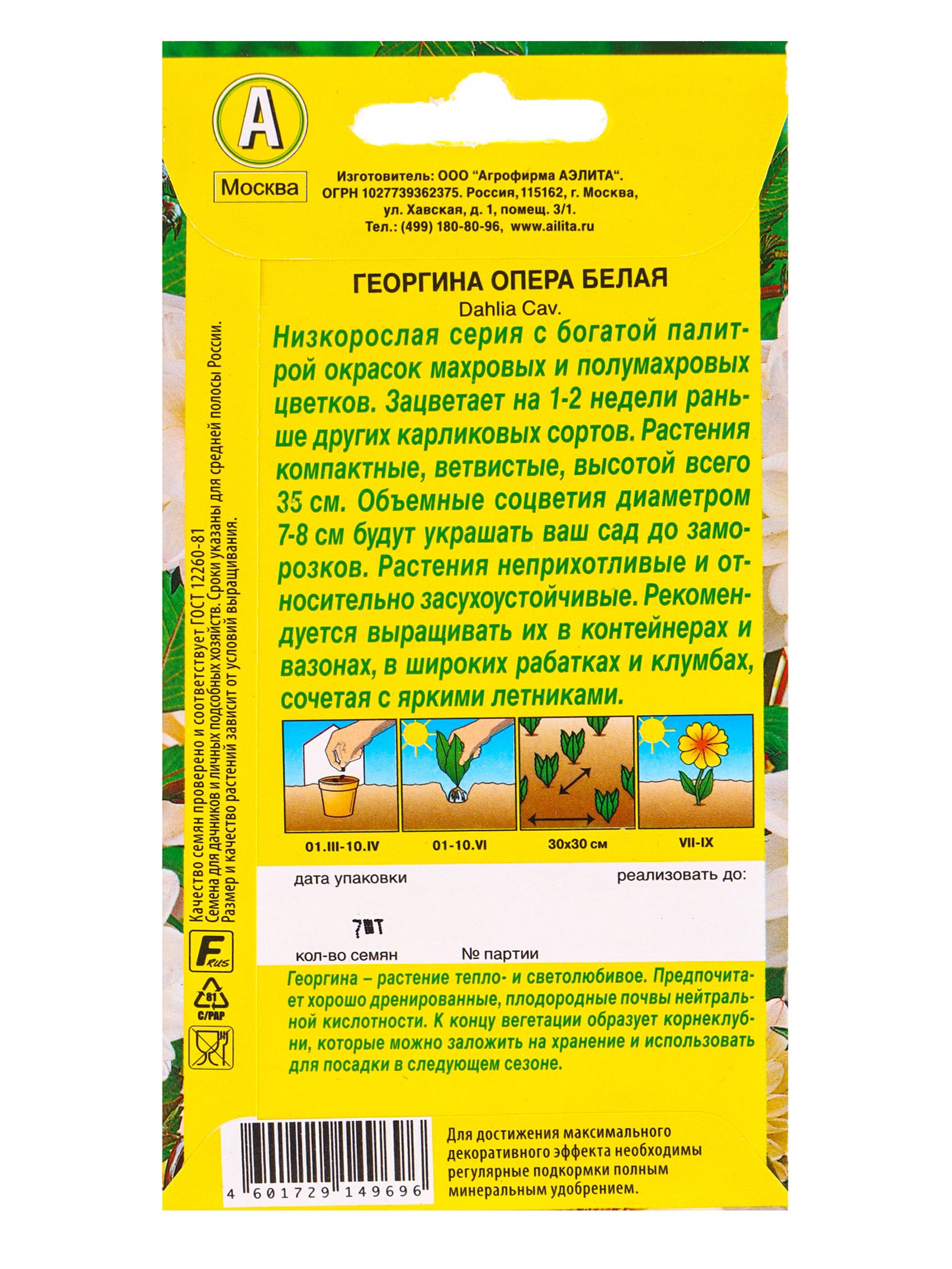 Семена цветов Георгина Опера белая, Ц/П,7 шт., Агрофирма АЭЛИТА, Нидерланды