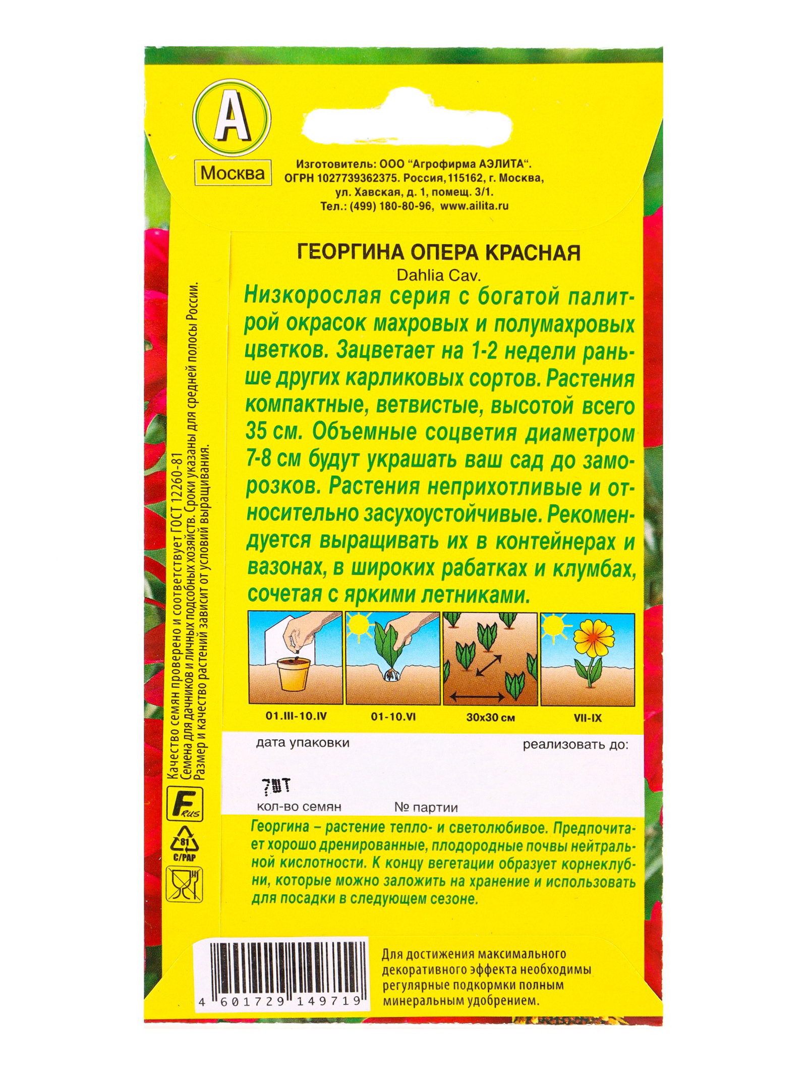 Семена цветов Георгина Опера красная, Ц/П,7 шт., Агрофирма АЭЛИТА, Нидерланды