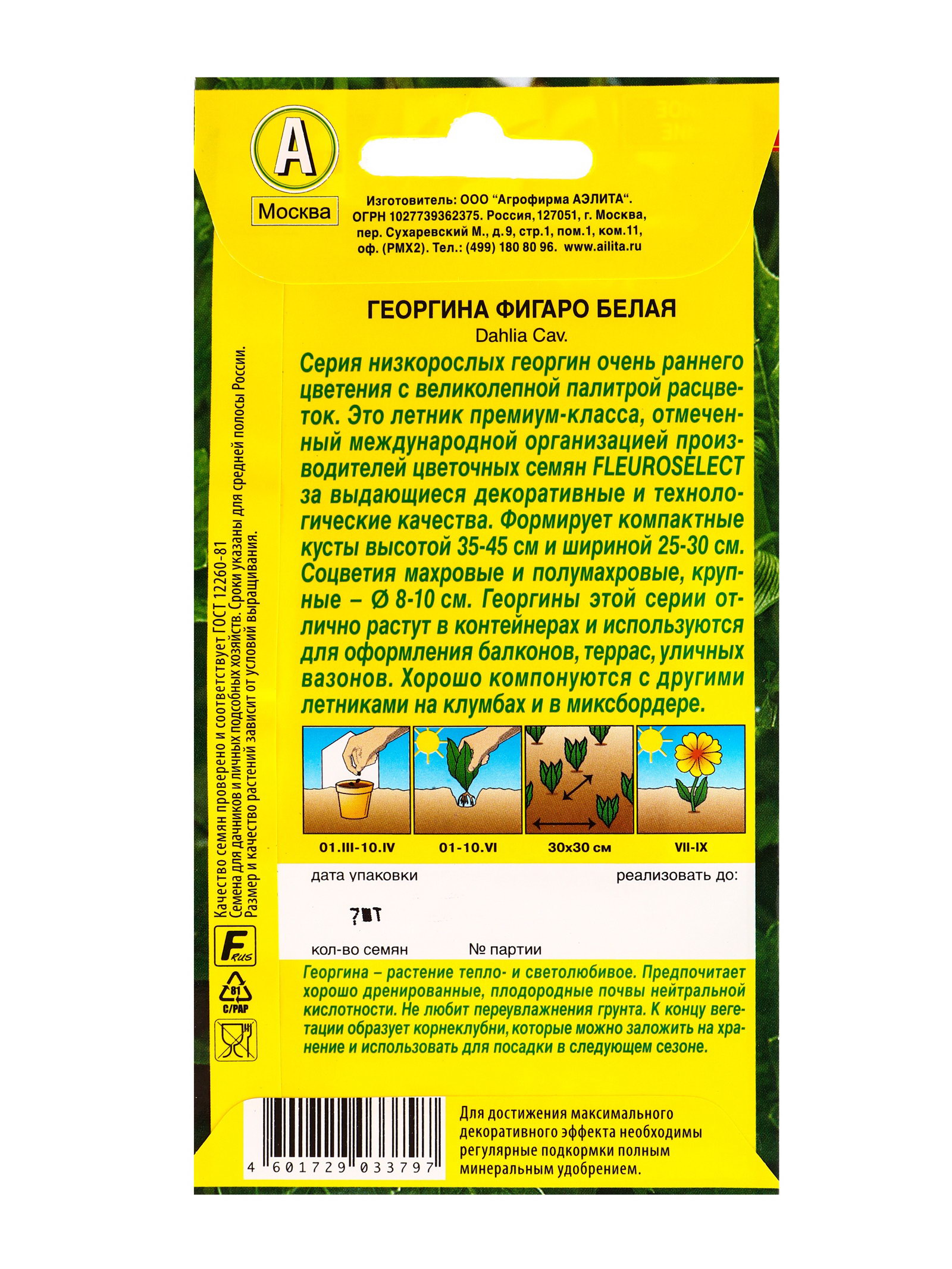 Семена цветов Георгина Фигаро махровая белая, Ц/П,7 шт., Агрофирма АЭЛИТА, Нидерланды