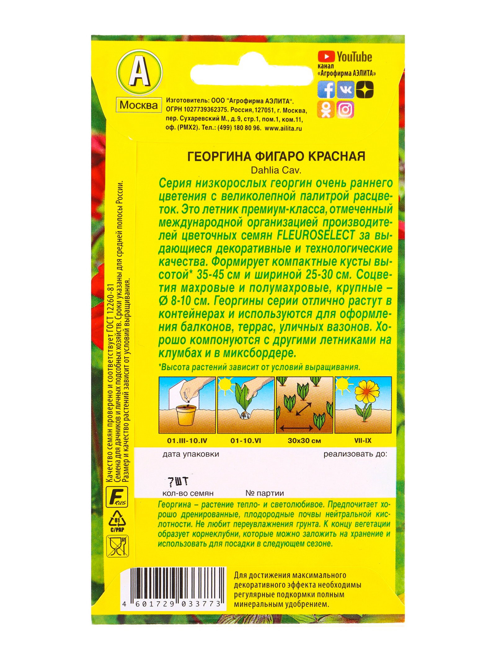 Семена цветов Георгина Фигаро махровая красная, Ц/П,7 шт., Агрофирма АЭЛИТА, Нидерланды