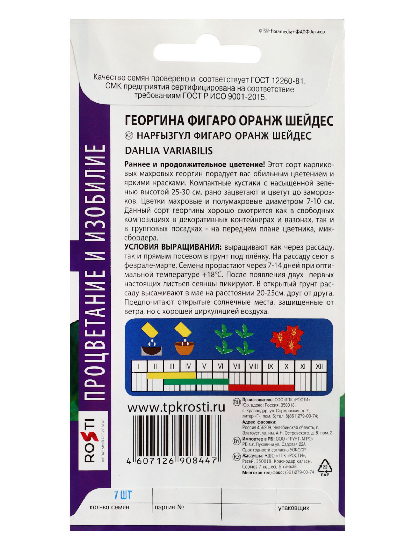 Посев на рассаду: Апрель, Март, Февраль Посев (посадка) в грунт: Апрель, Июнь, Май, Март Цветение период: Август, Июль, Октябрь, Сентябрь Размер упаковки: 8 x 0.1 x 15 см. tnved: 1209913000 Температурное ограничение: Нет Цвет: Красный Место выращивания: Открытый грунт Отношение к свету: Светолюбивые Высота растений: До 30 см По форме куста: Кустовая Нуждаются ли в стратификации: Нет Сухоцвет: Нет Махровые: Нет Вид: Георгина Вегетация: Однолетники Назначение: Для создания цветников, клумбы | ||