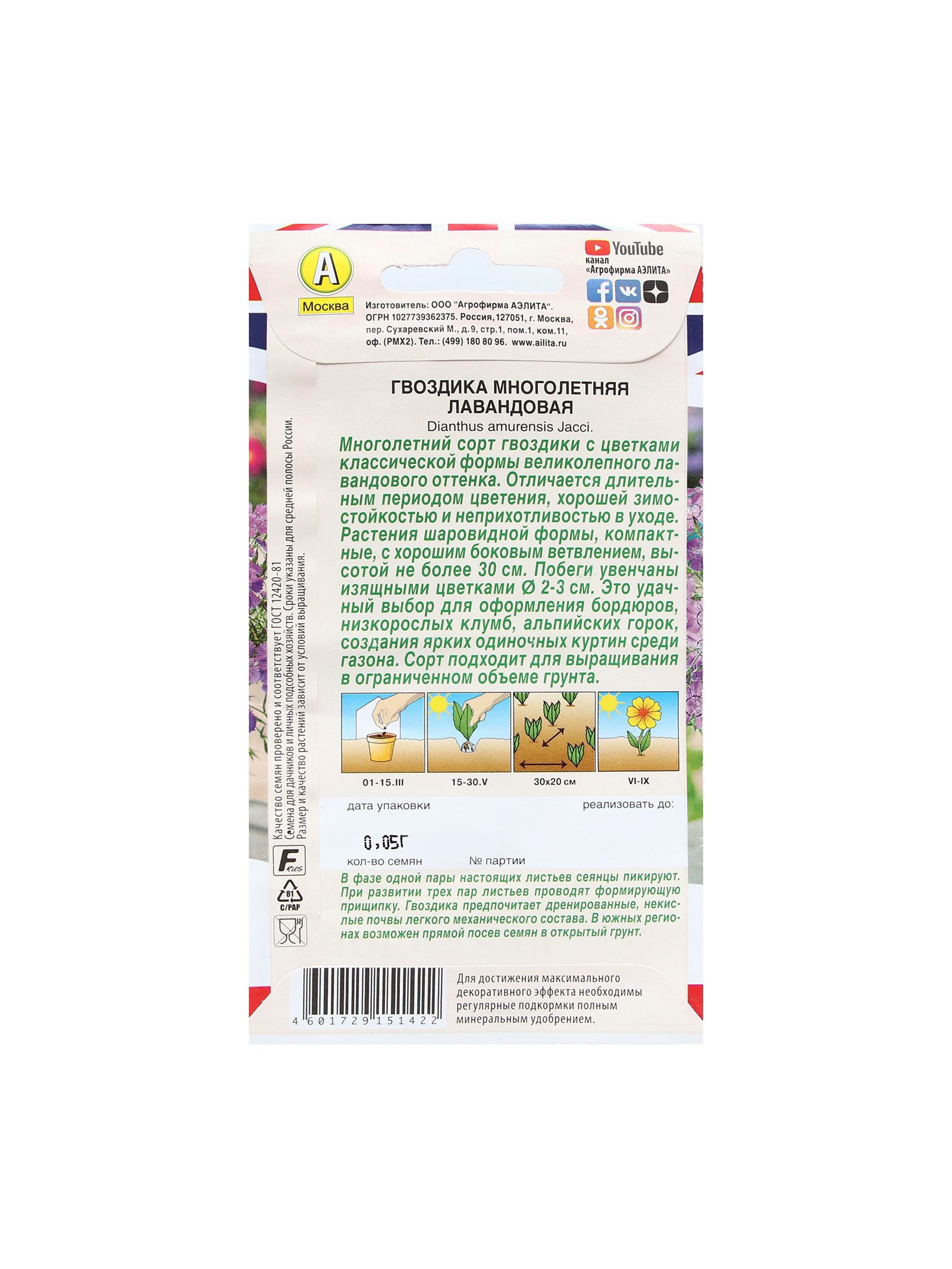 Набор семян Гвоздика многолетняя лавандовая, 5 шт., 9x17x1 см., Мой выбор, Россия