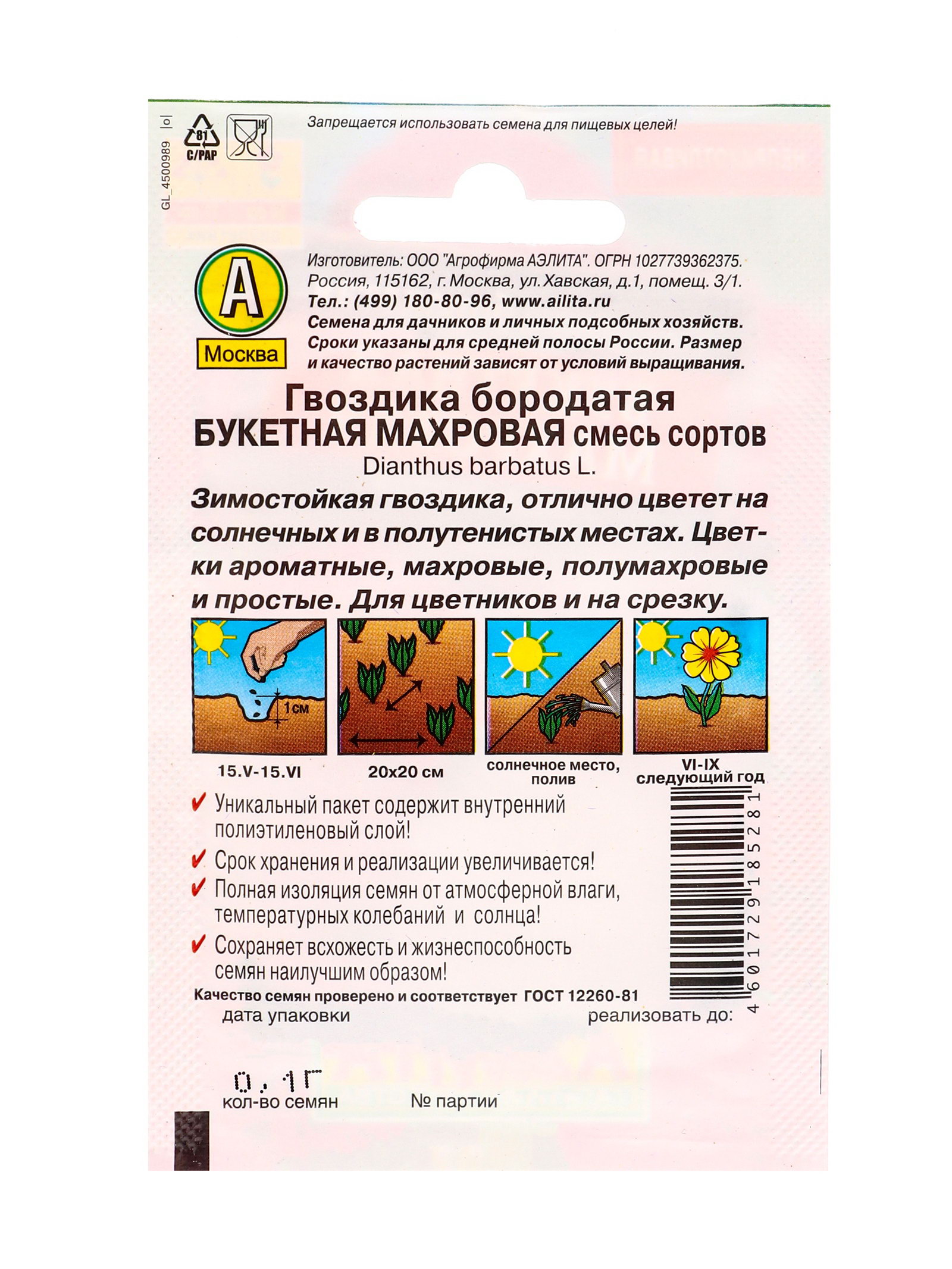 Семена цветов Гвоздика Букетная махровая, смесь сортов Дв, Лидер,0.1 г, Агрофирма АЭЛИТА, Нидерланды