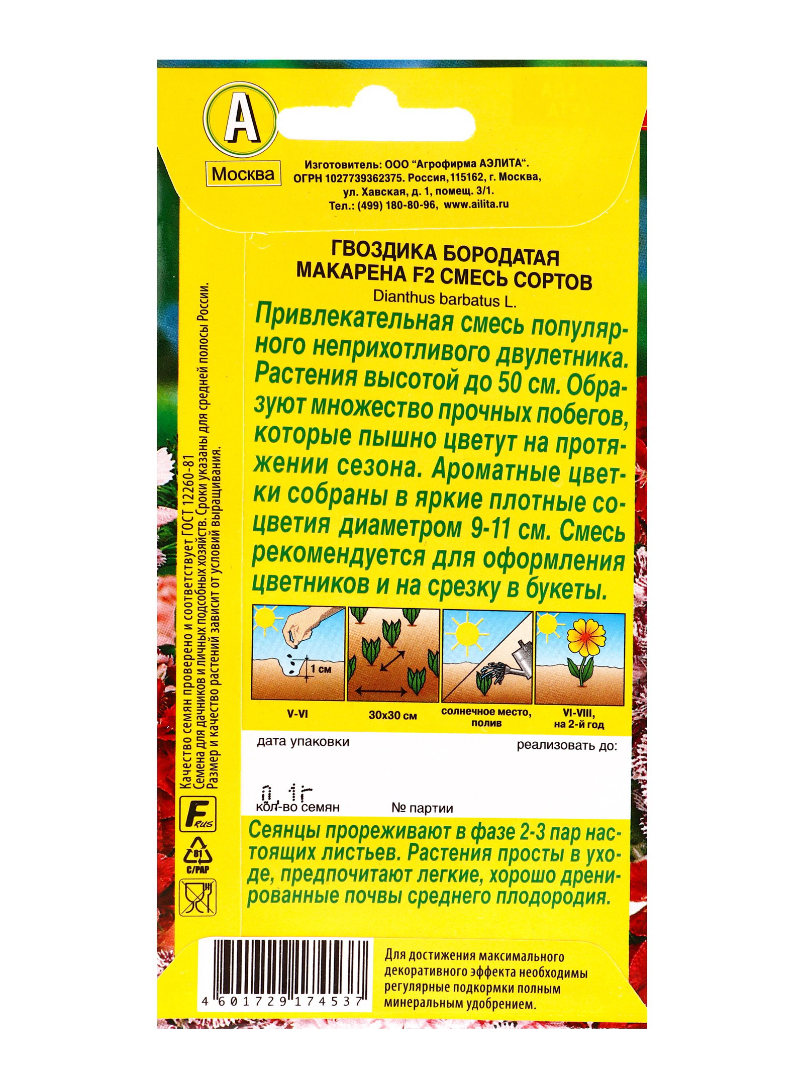 Семена цветов Гвоздика Макарена F2, смесь сортов Дв, Ц/П,0.1 г, Агрофирма АЭЛИТА, Нидерланды