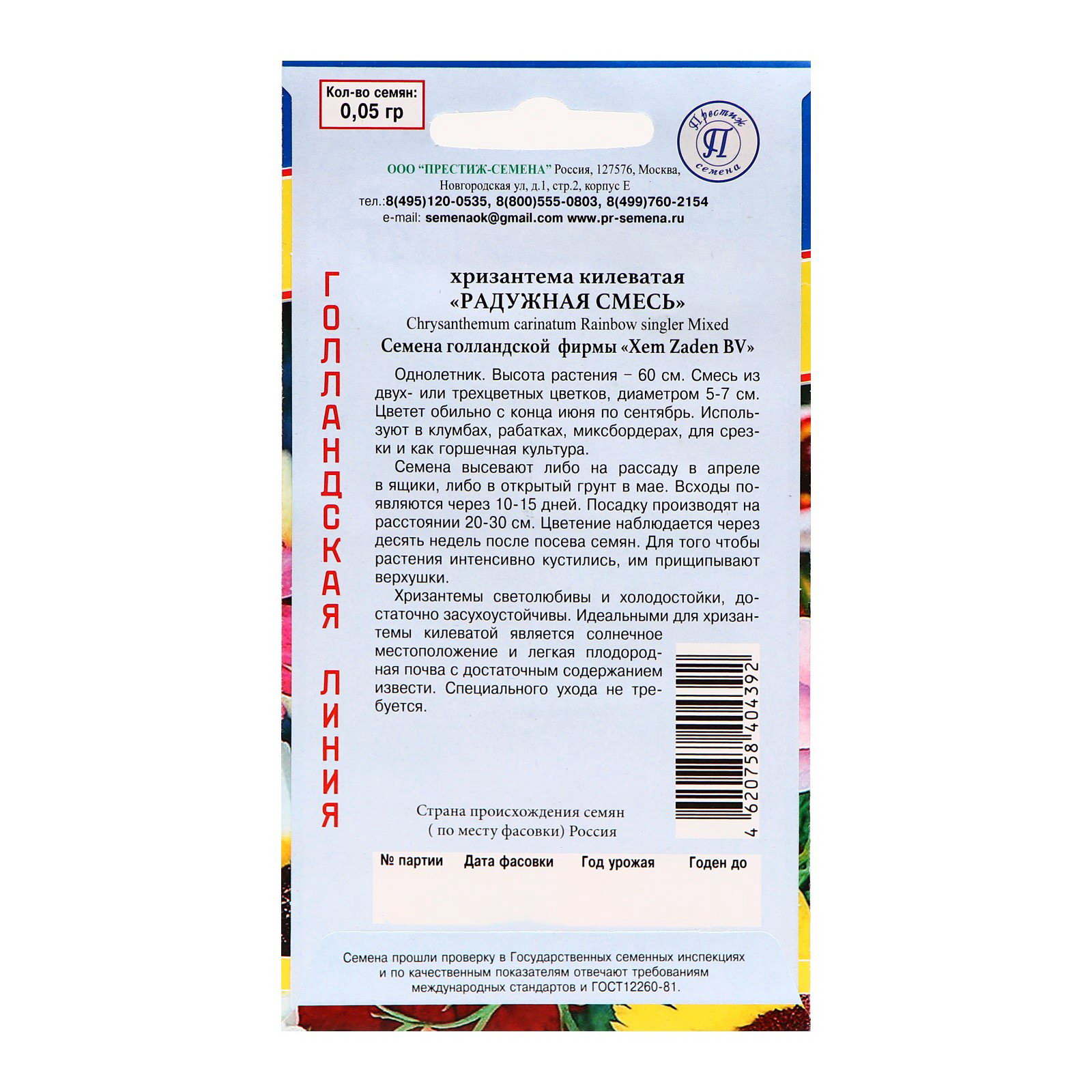 Семена цветов Хризантема Радужная Смесь РС-1, О, 0.05 г, 8x15x0.1 см., Престиж семена, Россия