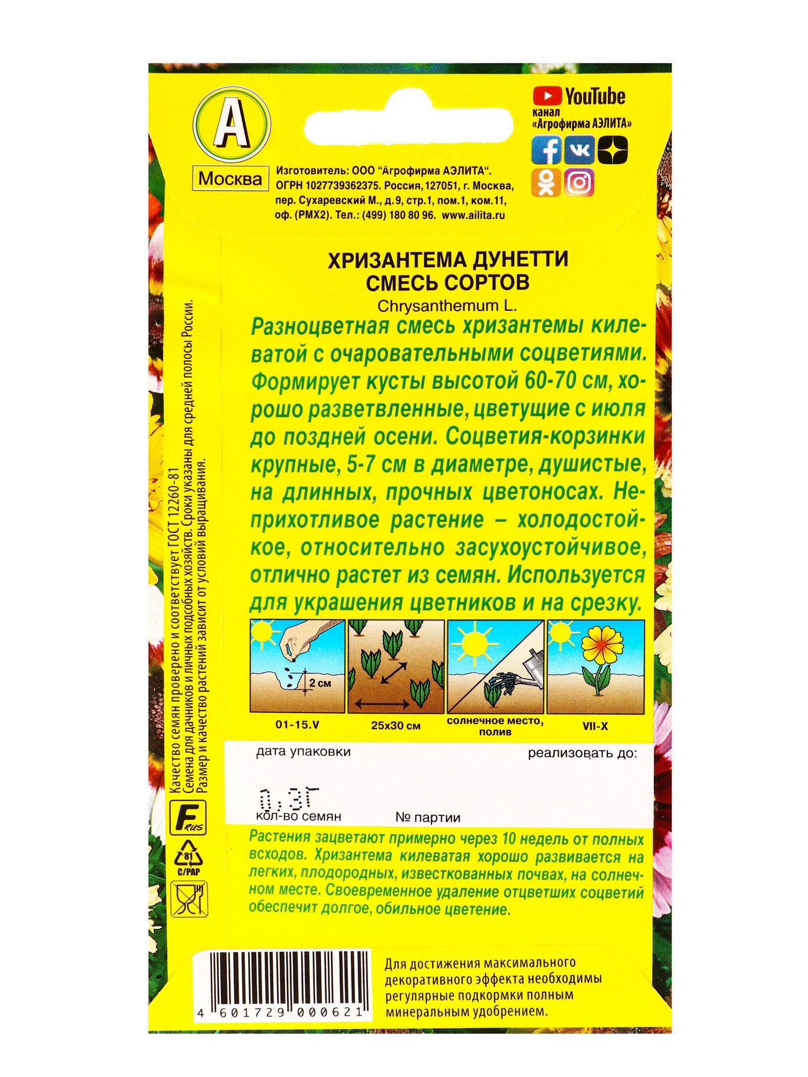 Семена цветов Хризантема Дунетти, смесь сортов, Ц/П,0.3 г, Агрофирма АЭЛИТА, Нидерланды