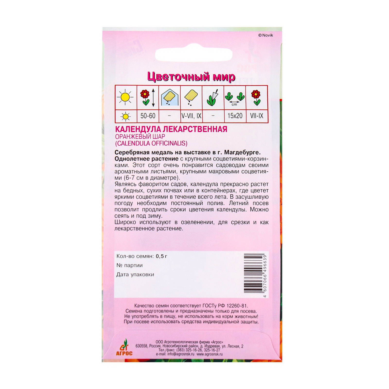 Семена Календула "Оранжевый шар", 0.5 г, "Агрос", Агросс, Германия