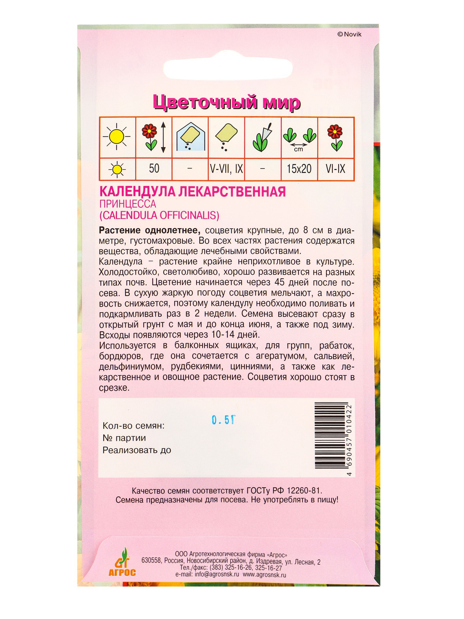 Семена Календула "Принцесса" 0.5 г, Агросс, Россия