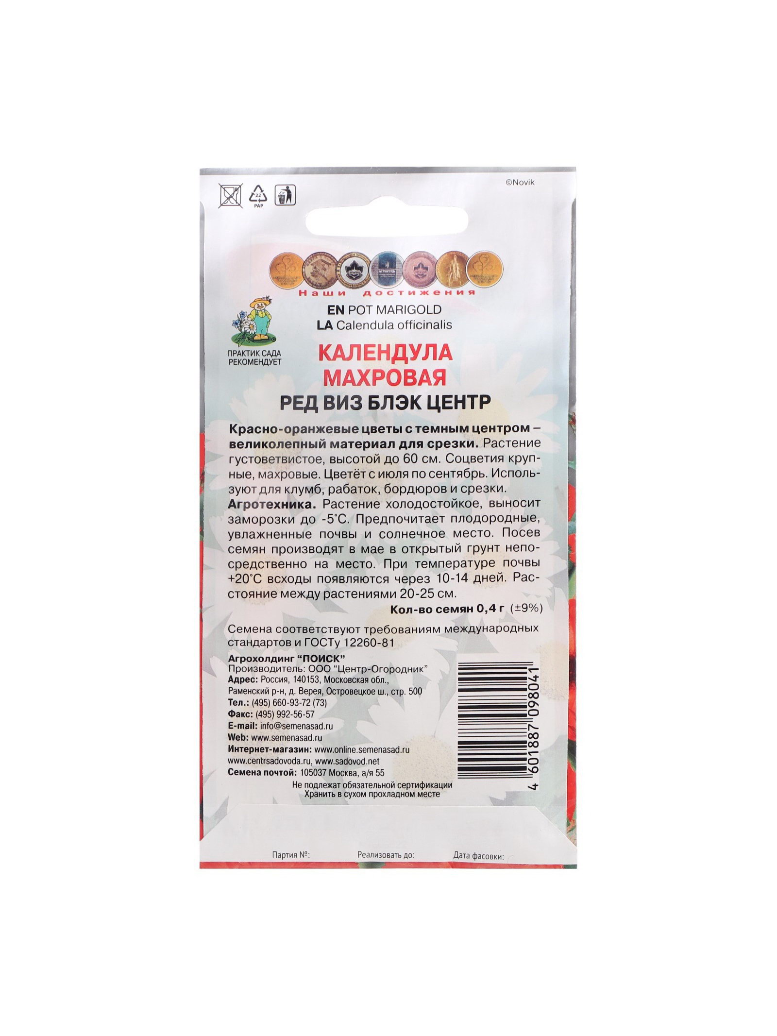 Набор семян Календула махровая "Ред виз блэк центр", 5 шт., 9x17x1 см., Мой выбор, Россия