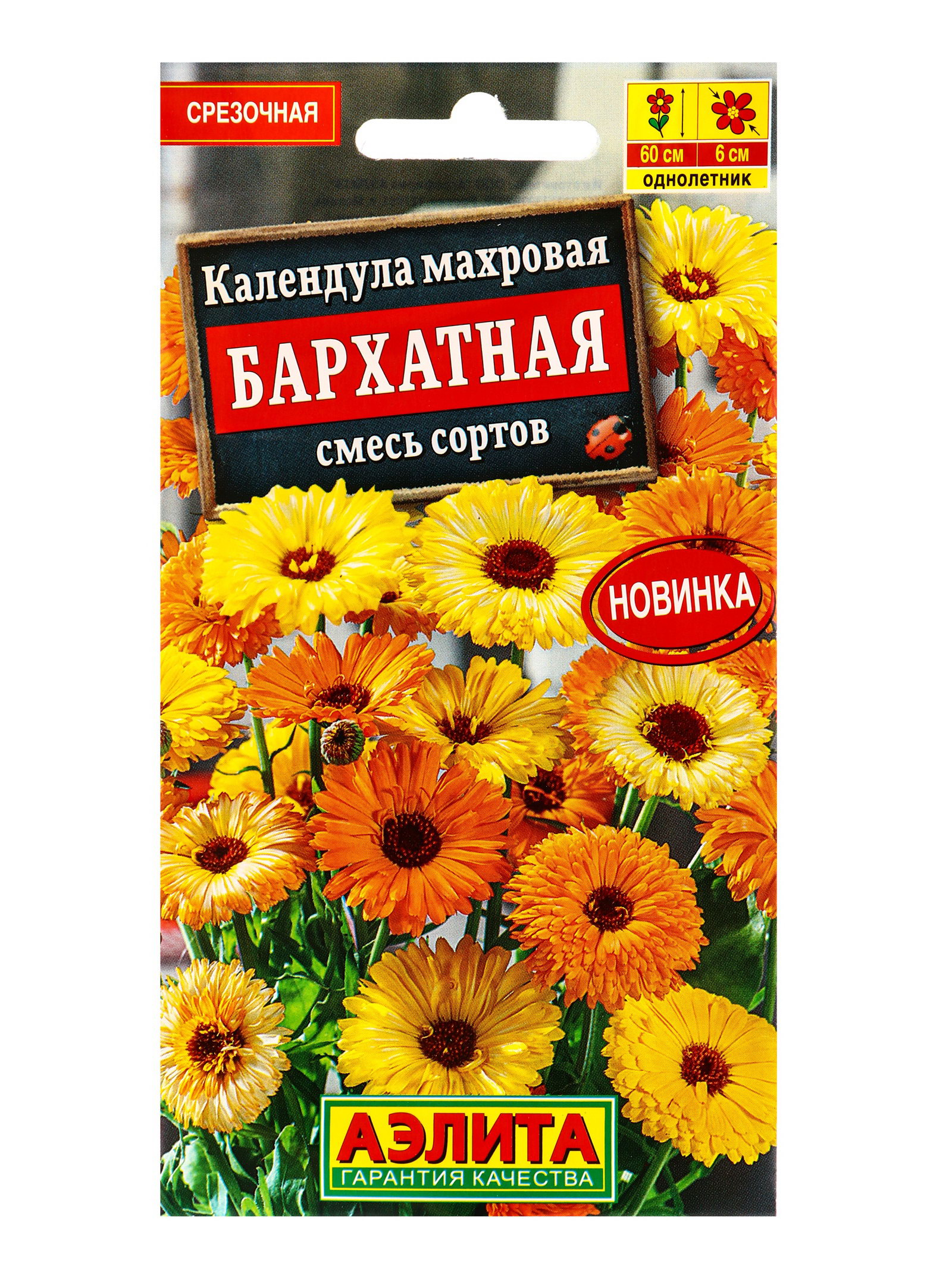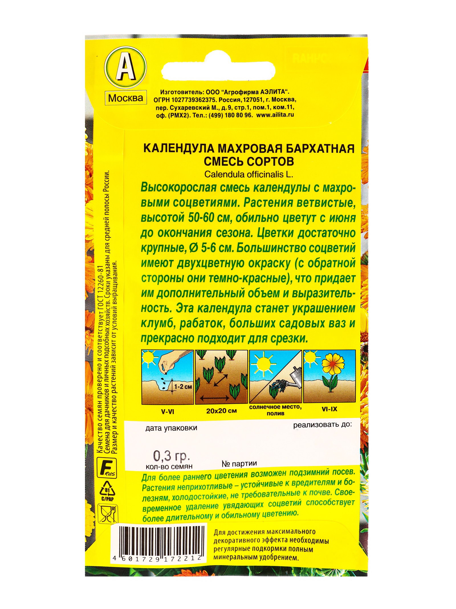 Семена цветов Календула махровая Бархатная, смесь сортов, Ц/П,0.3 г, Агрофирма АЭЛИТА, Германия