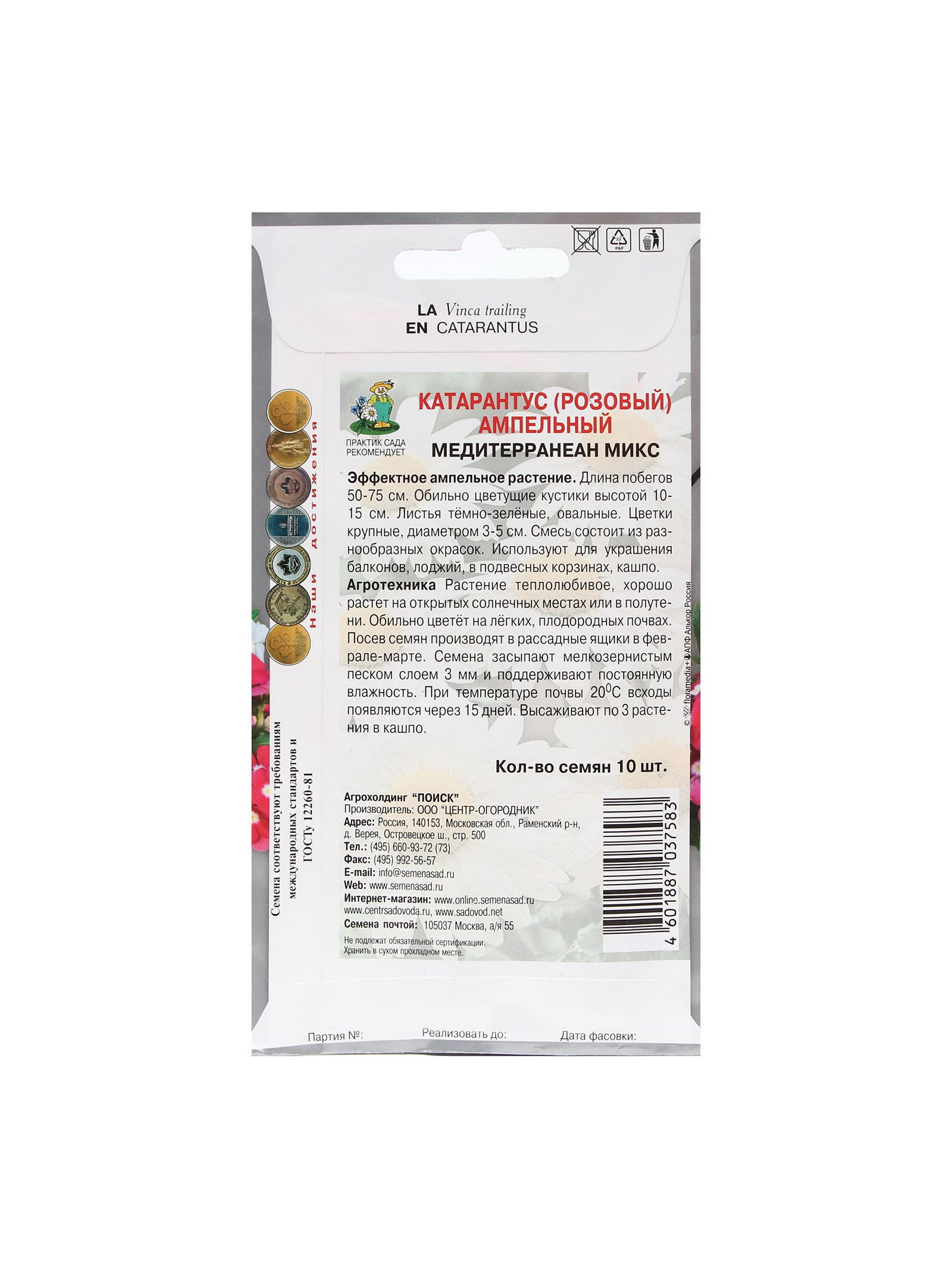 Набор семян Катарантус ампельный "Медитерранеан Микс", 3 шт., 9x17x1 см., Мой выбор, Россия