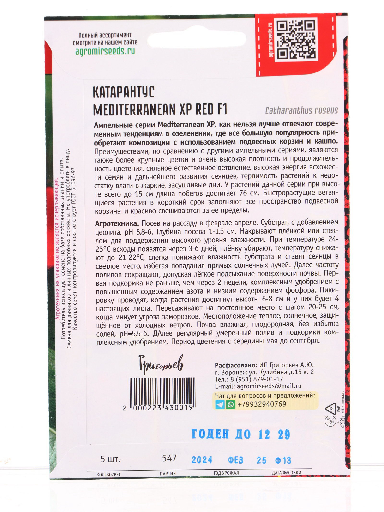 Семена цветов Катарантус Средиземноморский XP Red F1, Григорьев, Россия