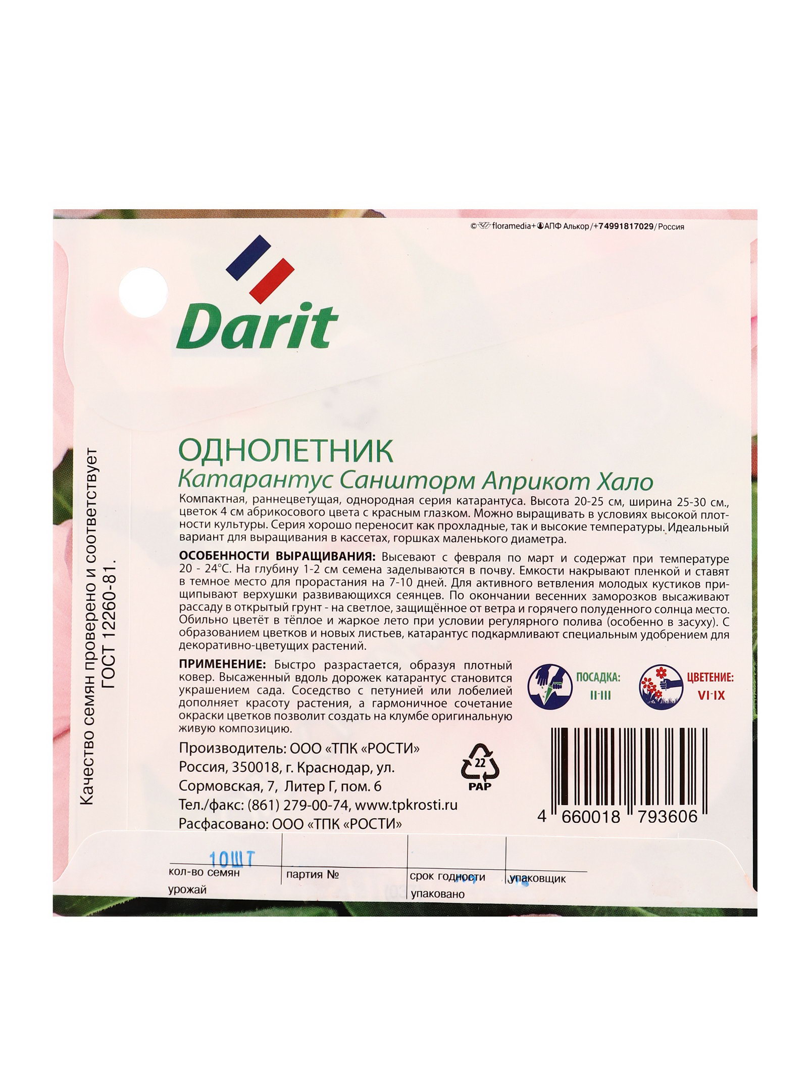 Семена цветов Катарантус Саншторм "Априкот Хало", О, 10 шт, Агроуспех, Россия