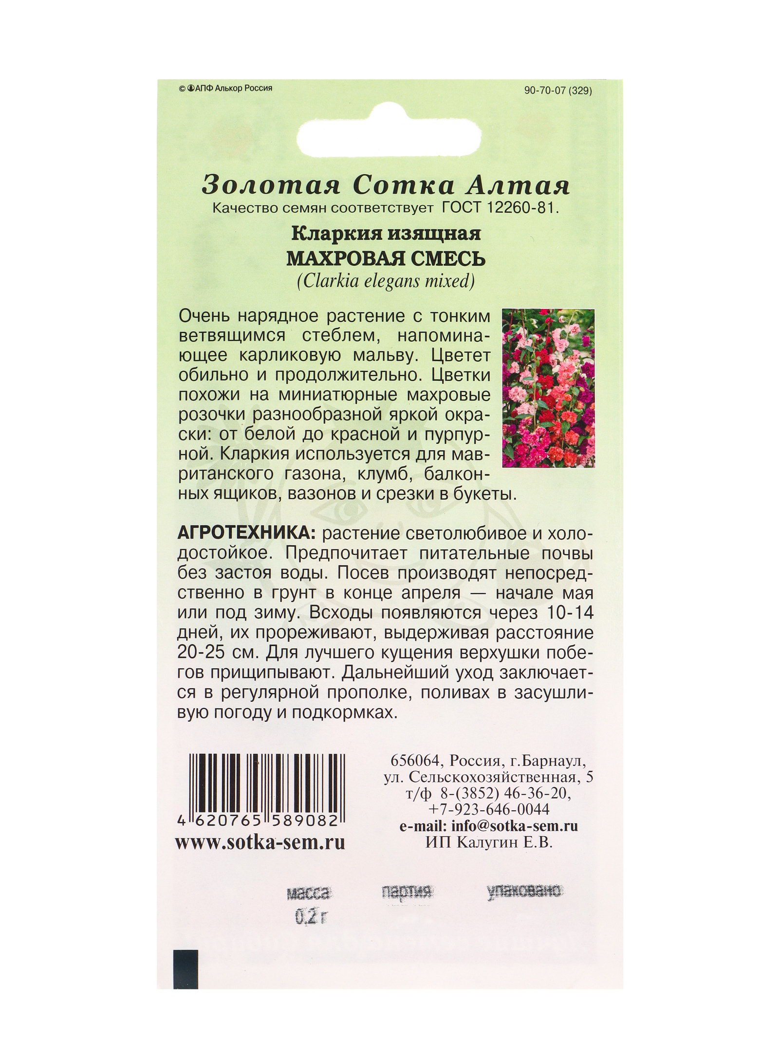 Семена Кларкия Махровая смесь, 0.2 г, Золотая Сотка Алтая, Россия