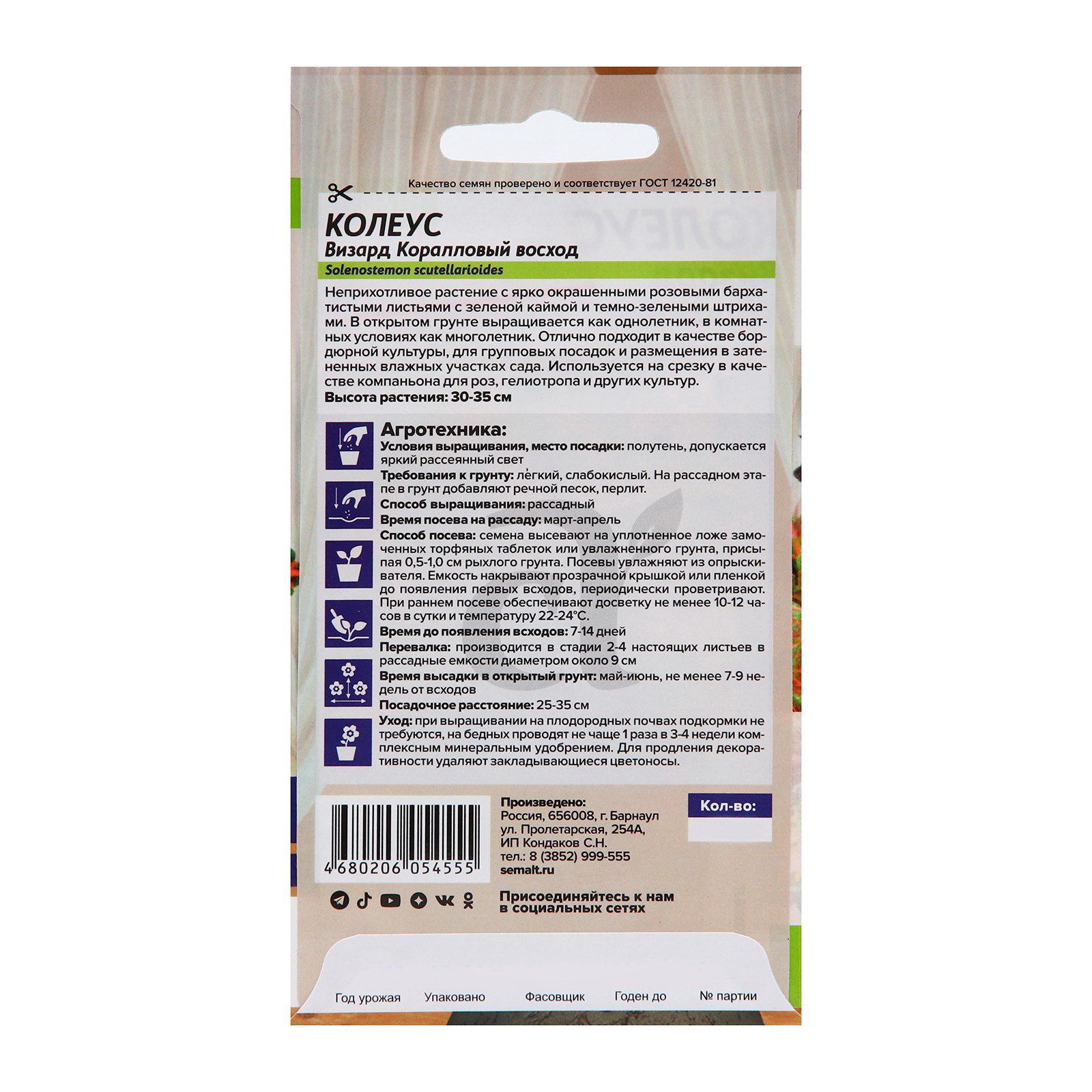 Семена комнатных цветов Колеус "Коралловый Восход", ц/п, 5 шт, Семена Алтая, Россия