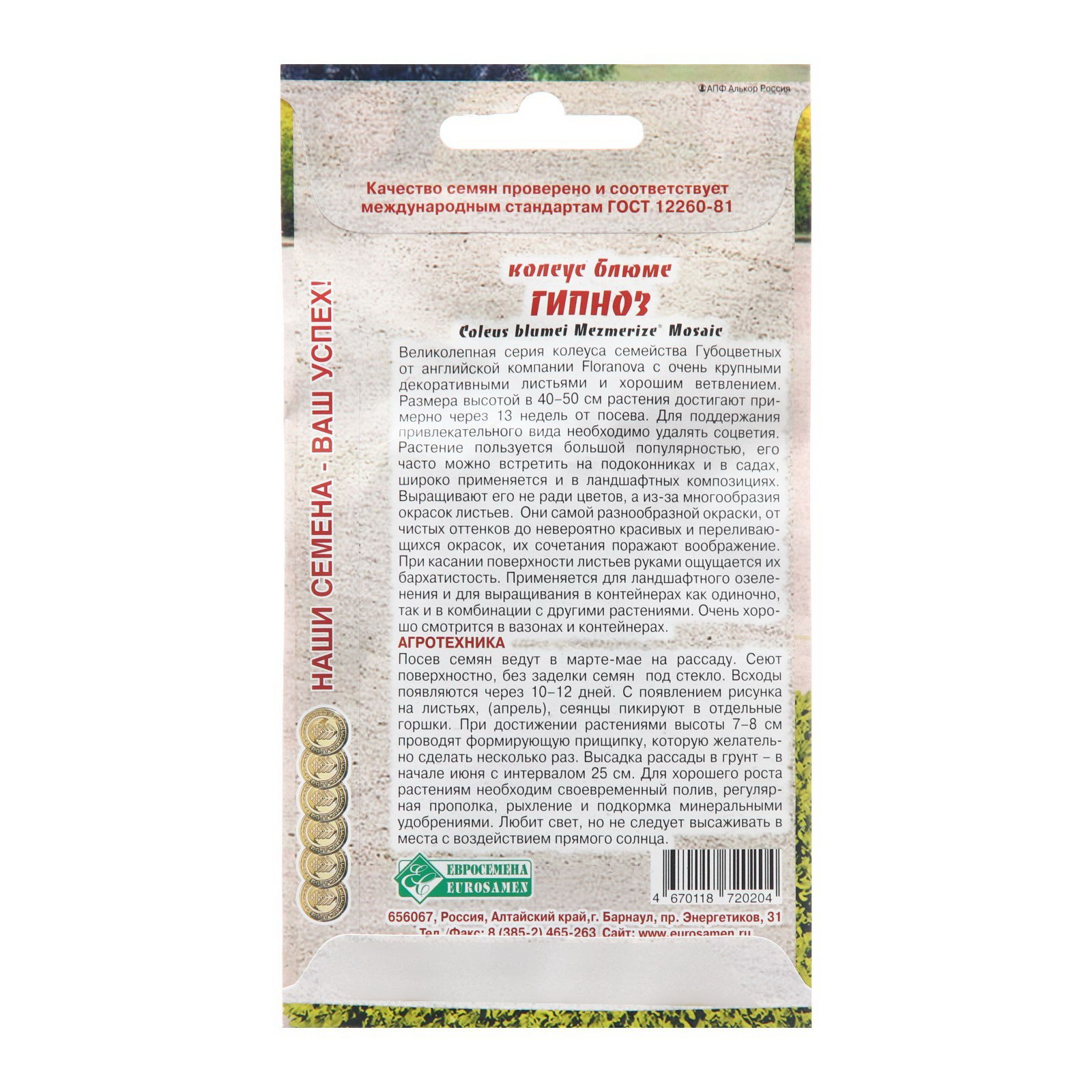 Семена Колеус блюме "Гипноз", 3 шт, Евросемена, Россия